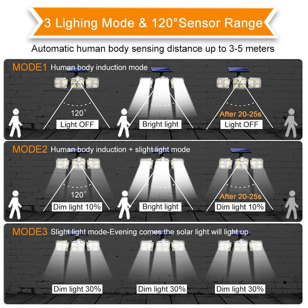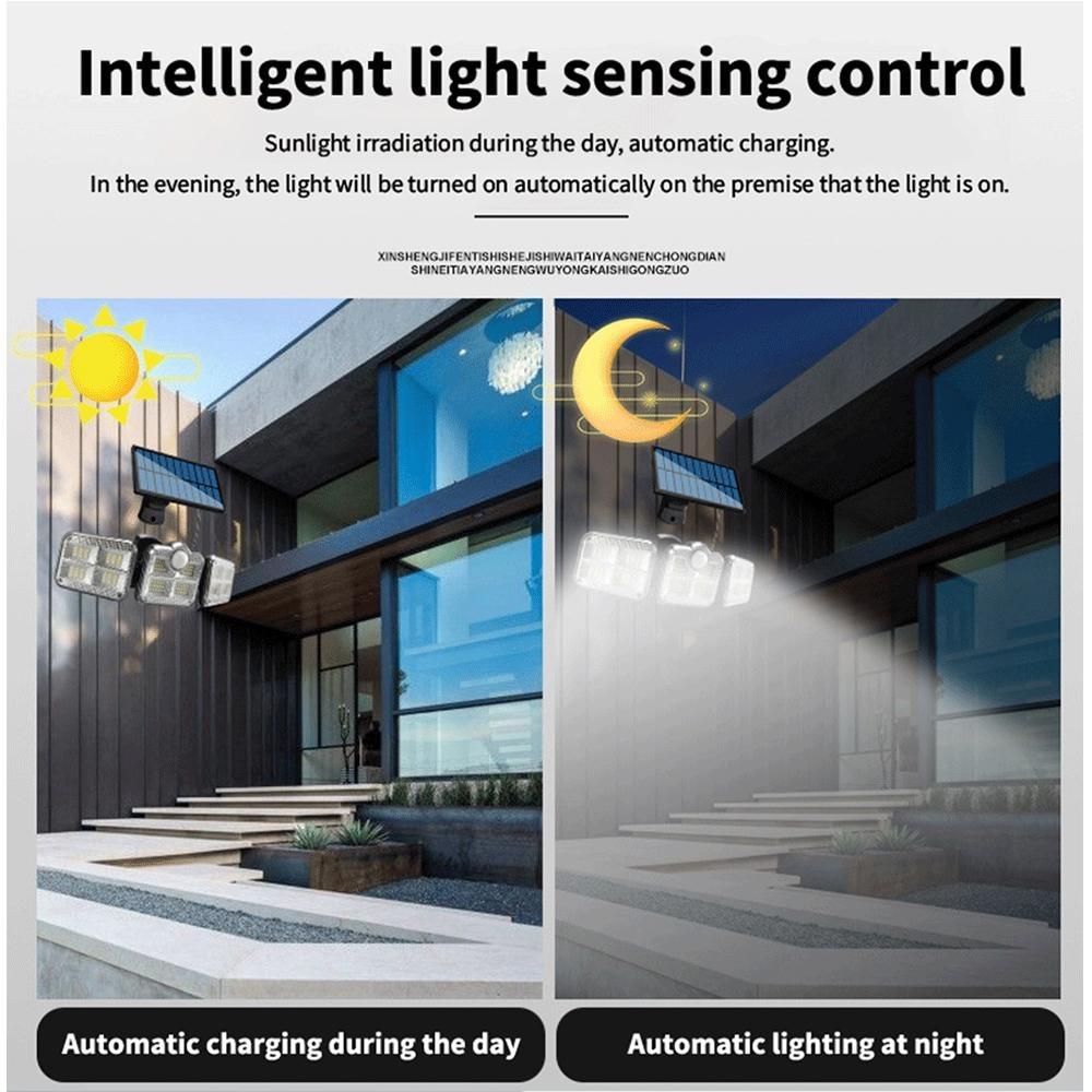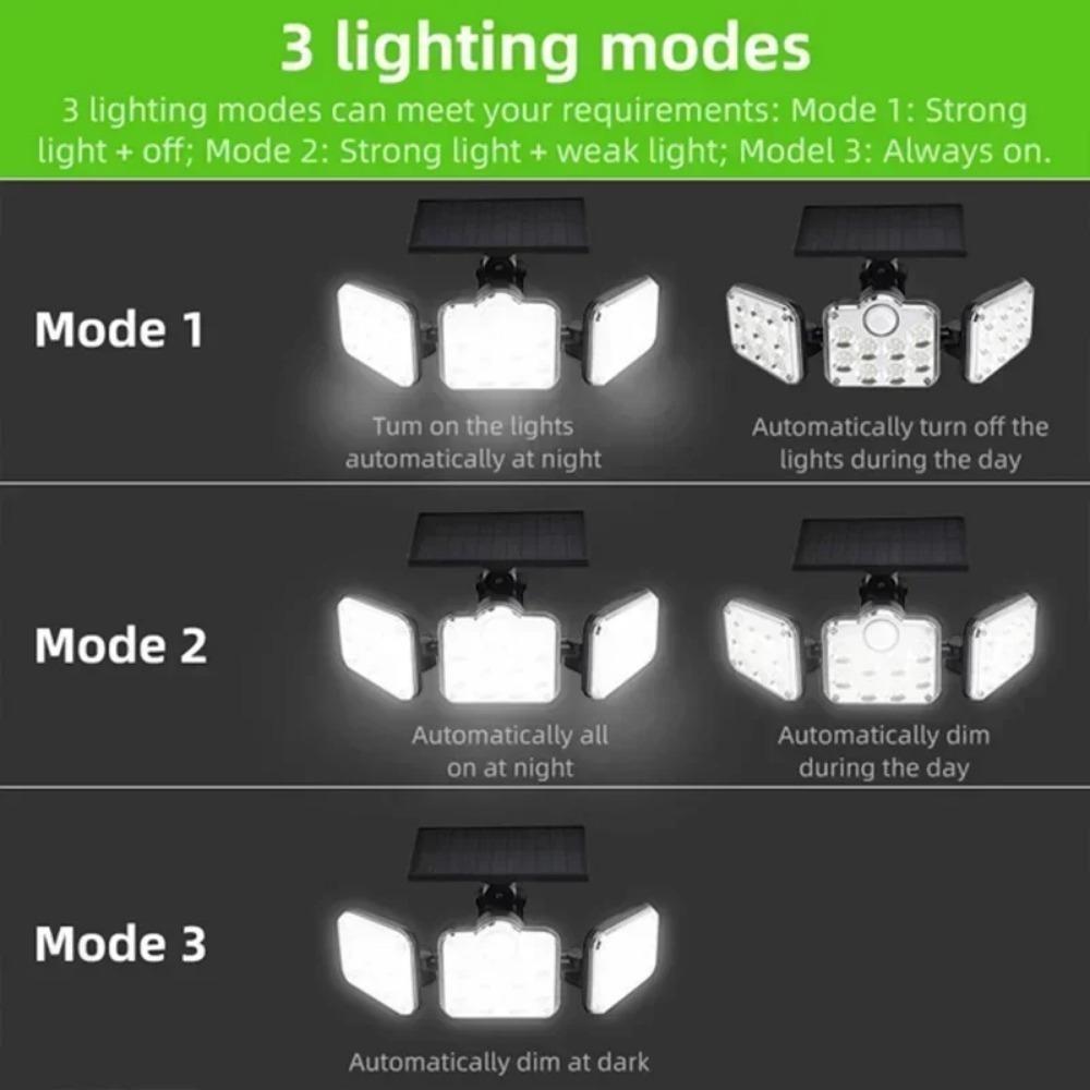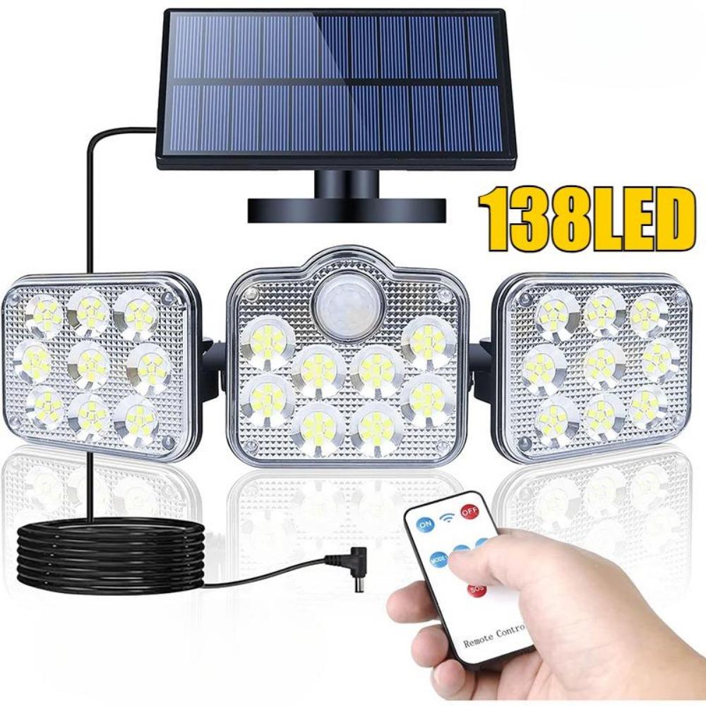 Солнечный уличный светильник 138 светодиодов, солнечный прожектор безопасности с 3 режимами, регулируемая осветительная головка для гаража, сада, двора