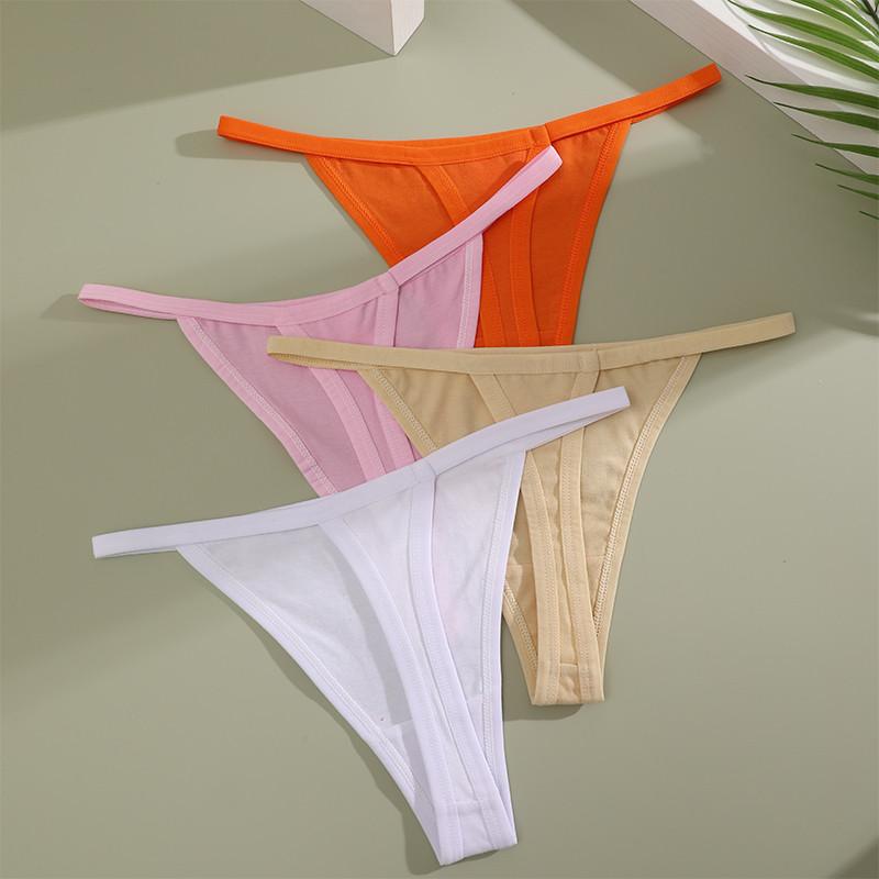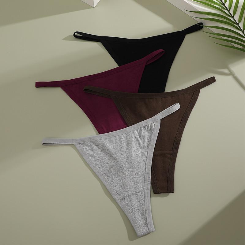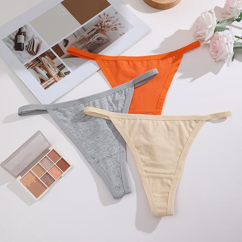 FINETOO Хлопковые трусики для женщин, сексуальное нижнее белье с Т-образным вырезом, однотонное нижнее белье S-XL, стринги
