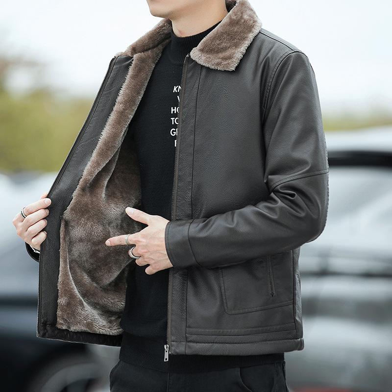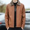 Куртка из бархатной кожи с лацканами, мужская куртка из искусственной кожи с мехом, свободная куртка среднего размера для мотоциклистов, утолщенная теплая мужская куртка