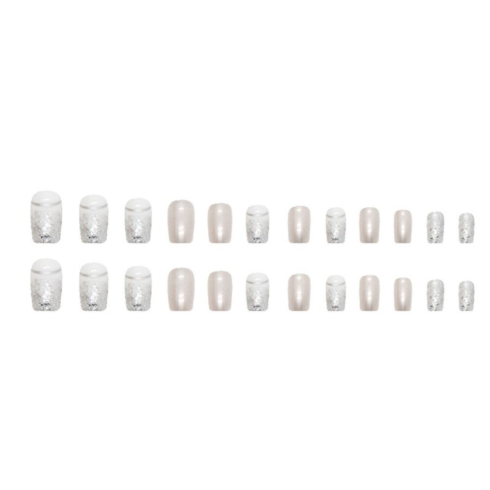 24pcs Manicure DIY Fake Nials Glitter False Nails Long Square French Silver