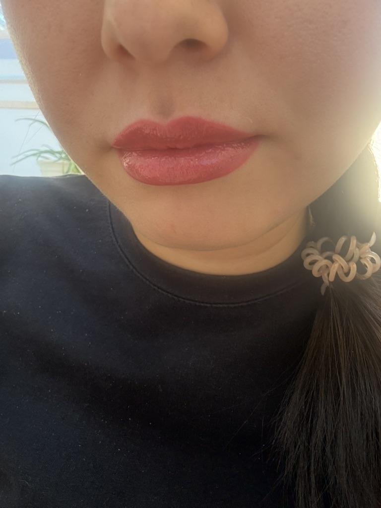 На вид цвет в футляре чуть темнее, но когда открываешь, то на самой кисти бледный. Удивило оформление самой кисти, внутри колпачка сверху сделаны жемчужные бусины. Блеск пахнет шоколадом, что тоже в отзывах никто не написал. Цвет красивый. По использованию дополню отзыв.