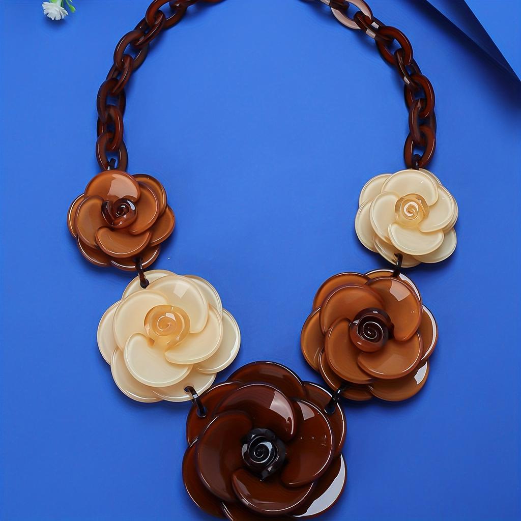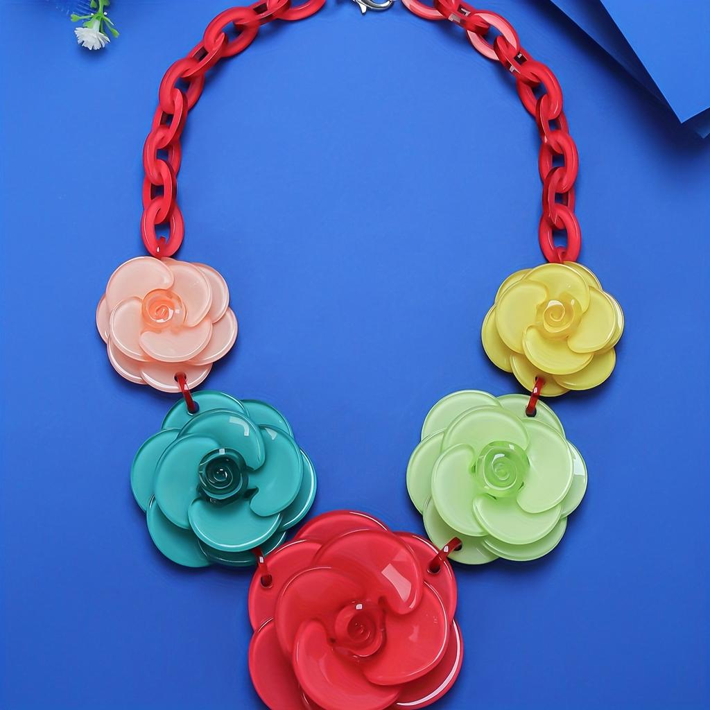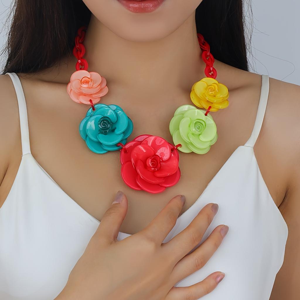 Ожерелье-чокер Boho Sexy из акрила с цветком розы для женщин, без покрытия, модный аксессуар весеннего сезона для повседневных и праздничных случаев