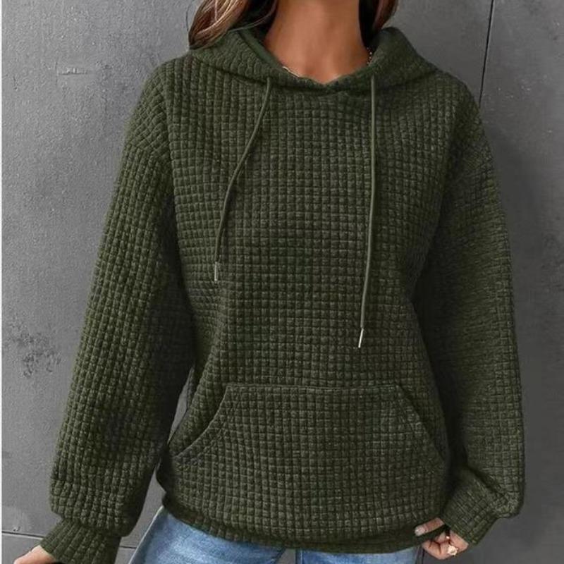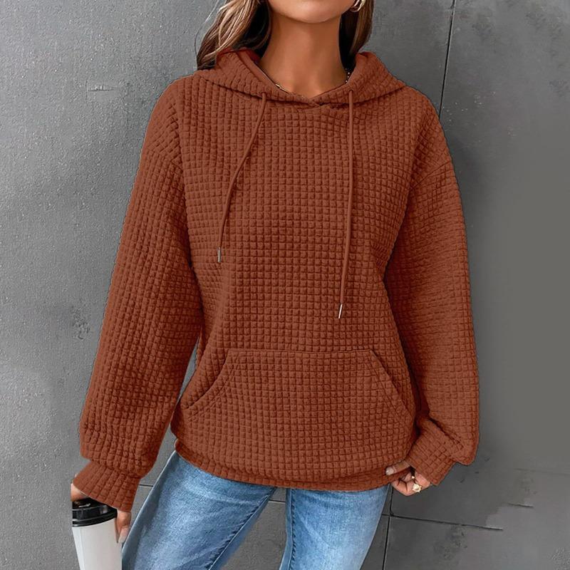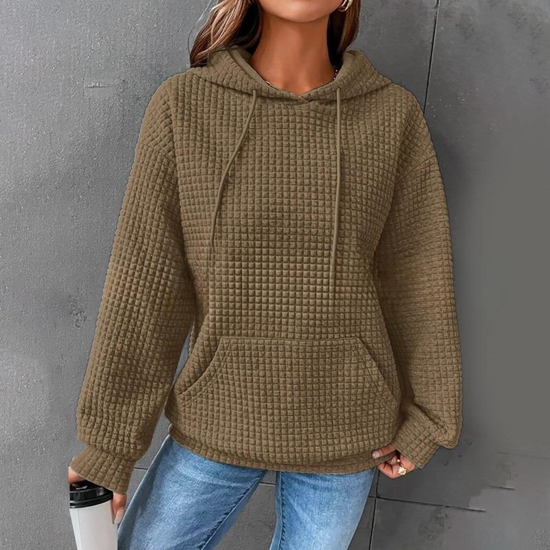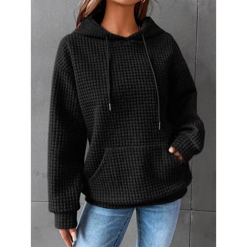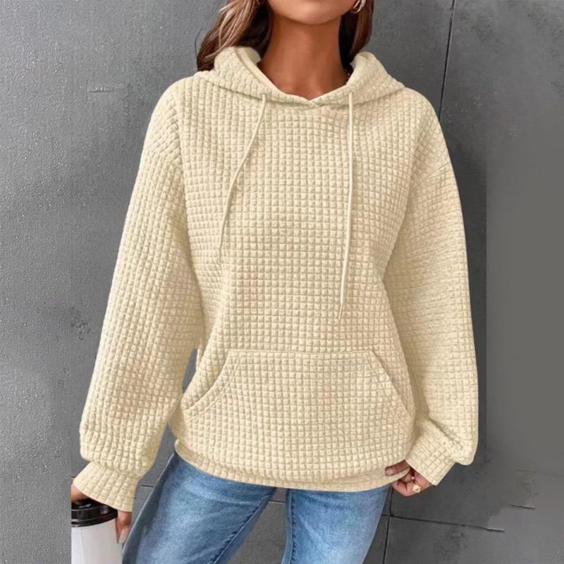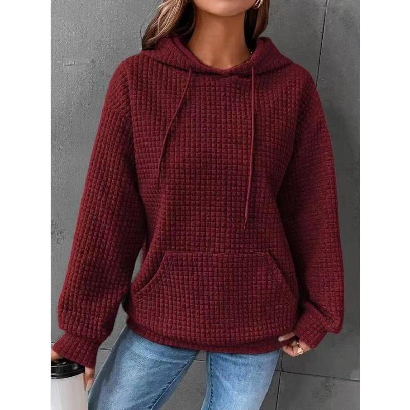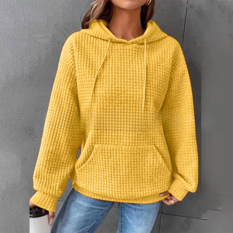 Осенняя женская толстовка свободного кроя с капюшоном и длинными рукавами в стиле пэчворк с вафельной отделкой