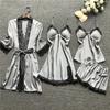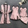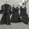 Комплект пижам из кружевного шелка, ночная рубашка, сексуальное женское белье, халат, женская пижама, 4 предмета, топ и шорты для сна, женская пижама, женская пижама
