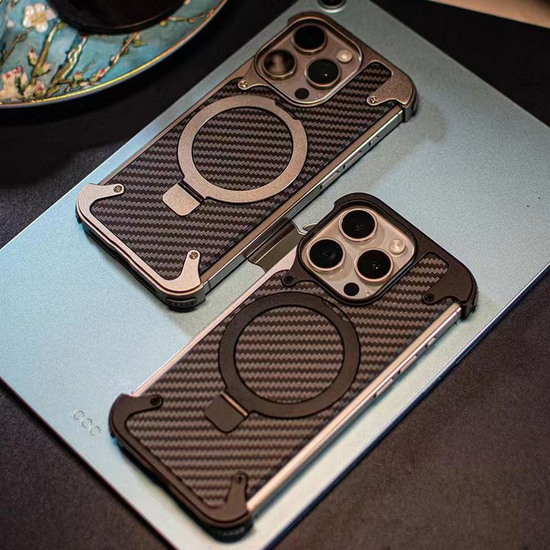Для iPhone 16 15 14 Pro Max чехол из углеродного волокна Magsafe магнитный беспроводной держатель для телефона алюминиевый сплав анти-столкновительный чехол
