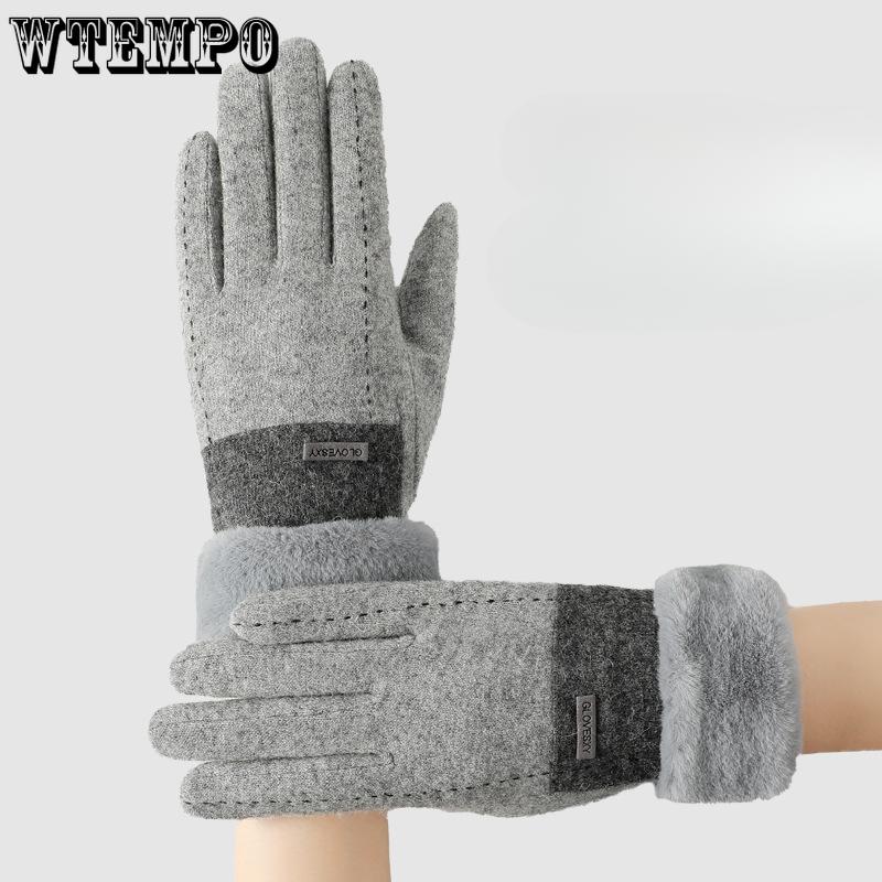 Зимние теплые перчатки женские толстые бархатные перчатки модные женские перчатки для велоспорта с сенсорным экраном