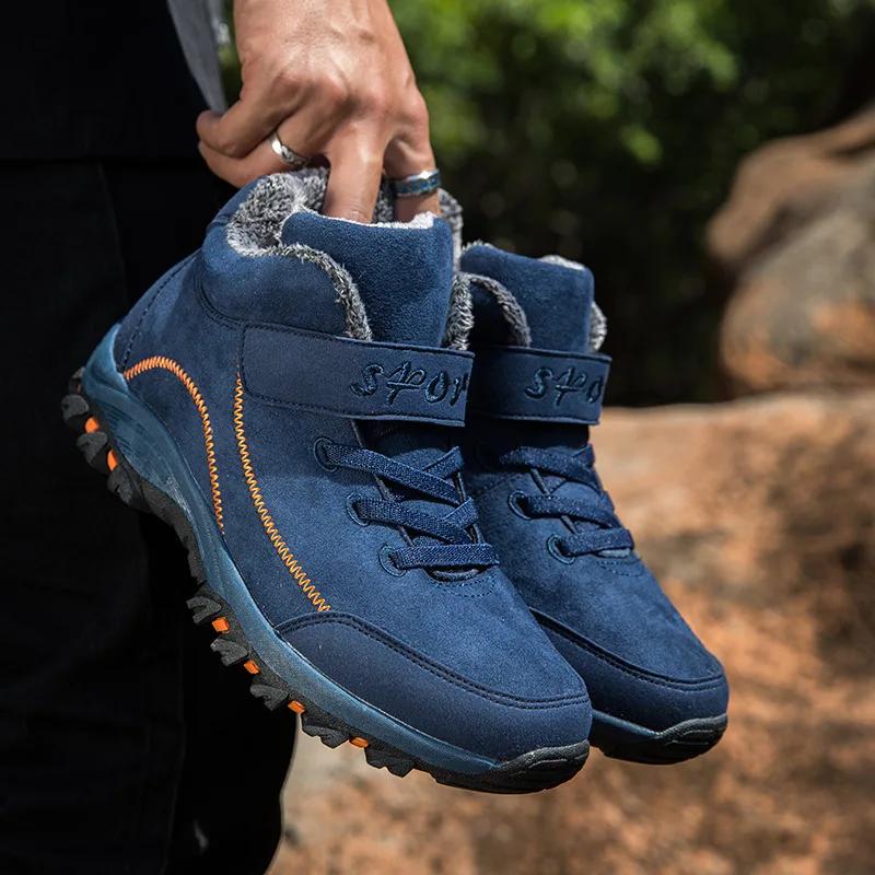 Мода Зима Мужские Замшевые Рабочие Ботинки Мех Теплые Ботильоны Уличные Нескользящие Мужские Ботинки Мужские Водонепроницаемые Зимние Ботинки Большой Размер 36-48