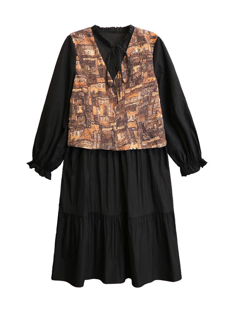 Xitao Ретро-гонконгский стиль поддельное платье из двух частей LJ1058