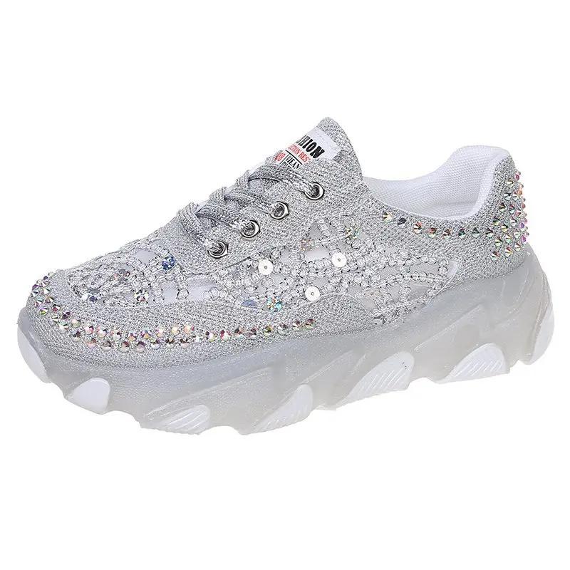 Модные прозрачные элегантные спортивные туфли для женщин, спортивные повседневные женские туфли со стразами для тенниса, модные прозрачные кроссовки с толстой подошвой