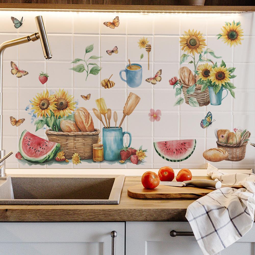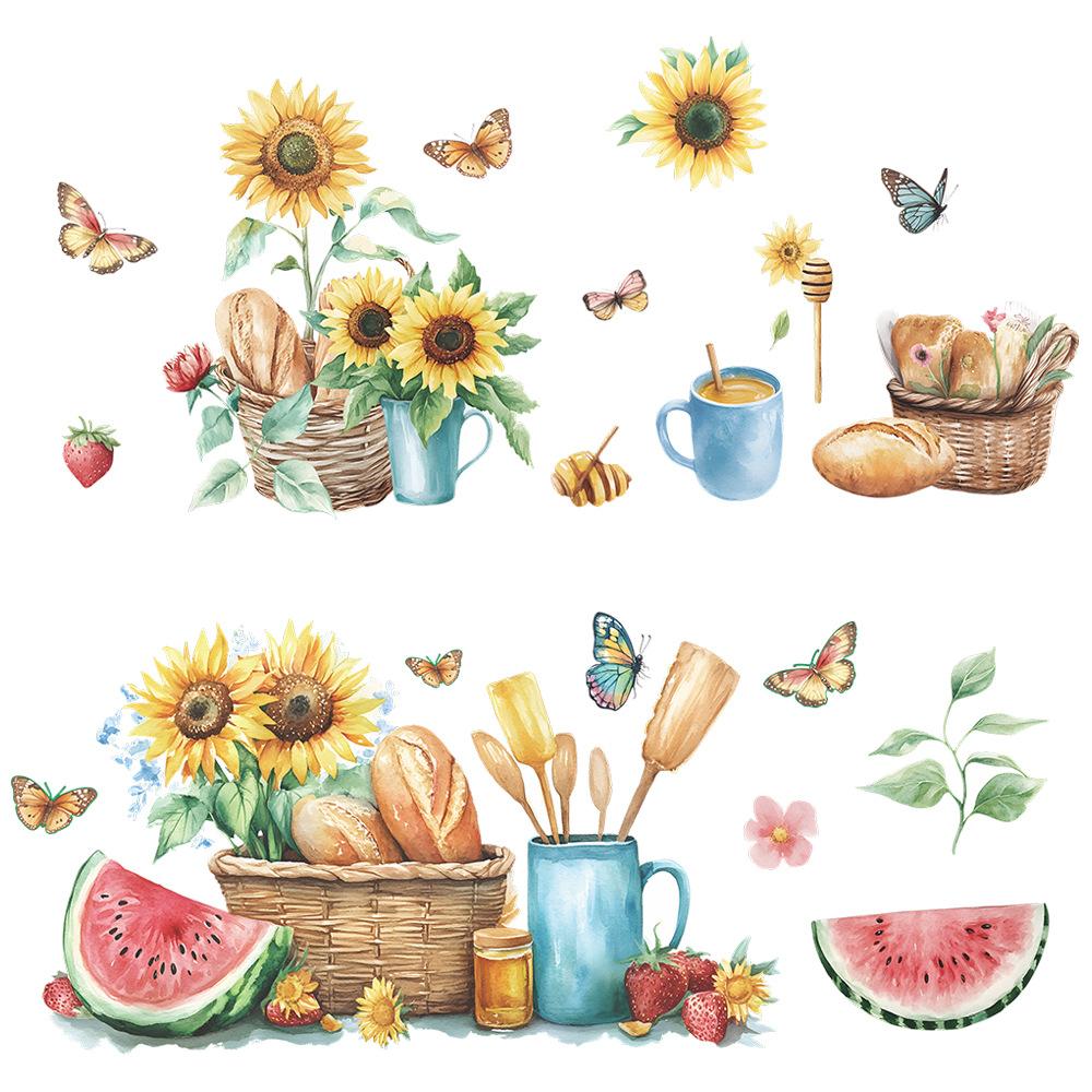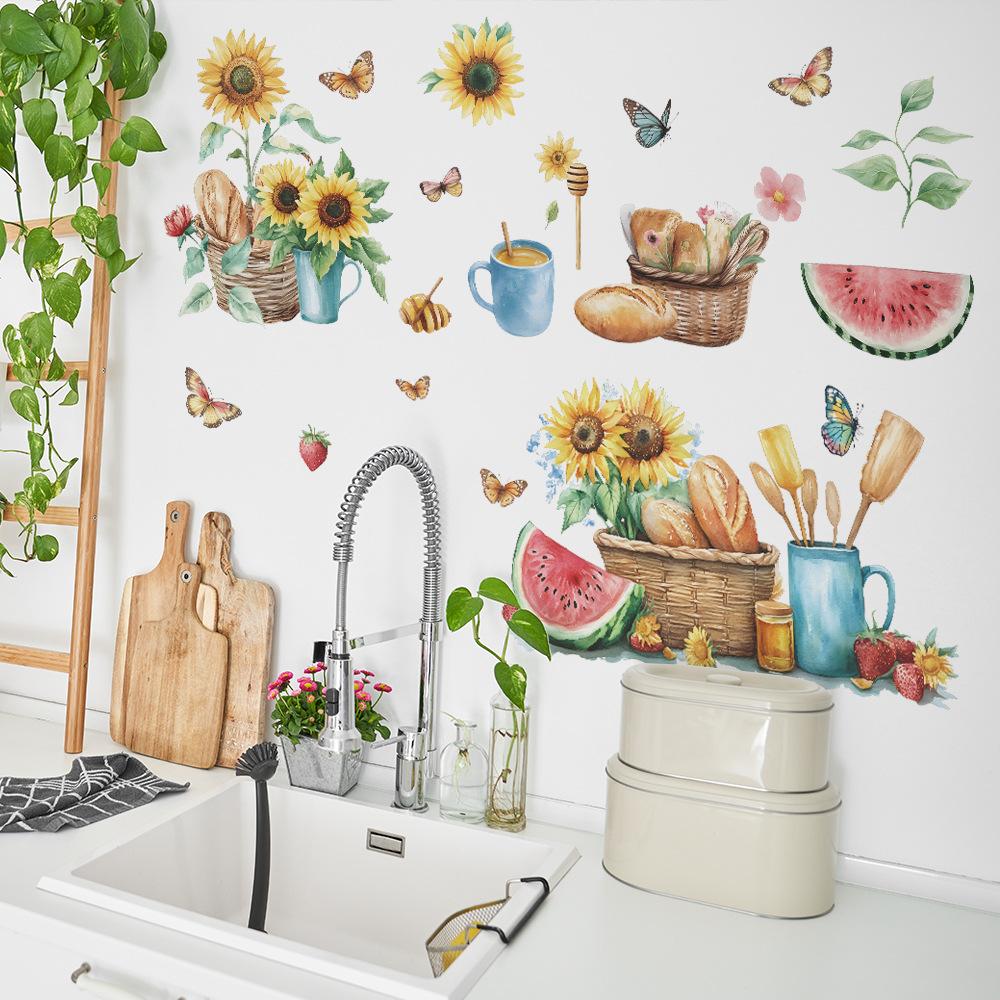 Летний окрашенный подсолнух хлеб бабочка кухня крыльцо фон ландшафтный дизайн настенная наклейка