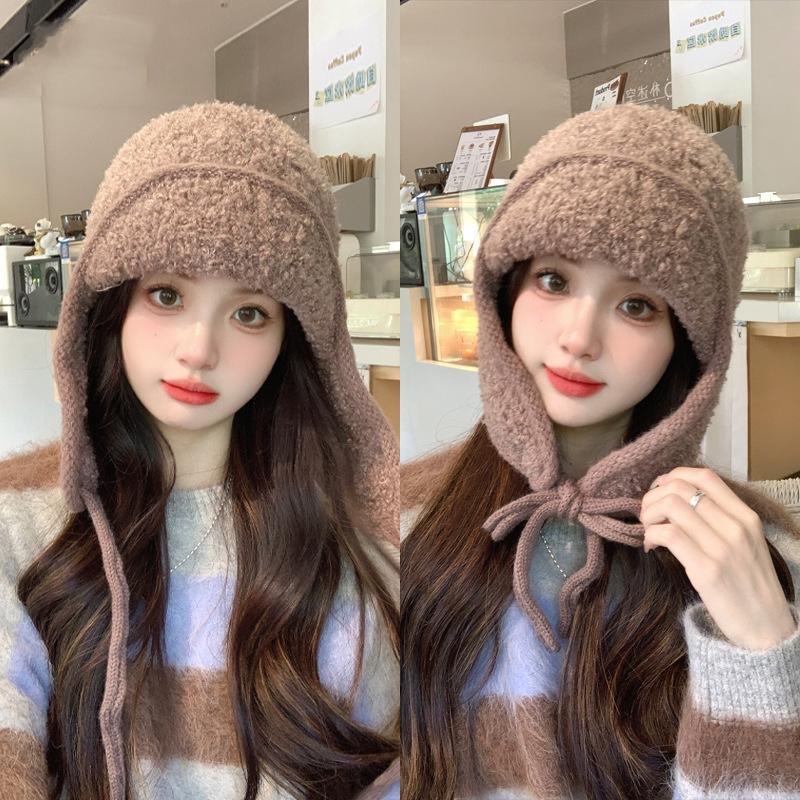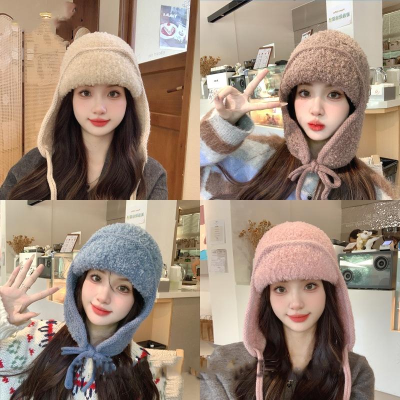 Женская теплая утепленная защитная шапка для ушей из холодного меха и бархата, вязаная шапка-бомбер для улицы, милая кепка Lei Feng