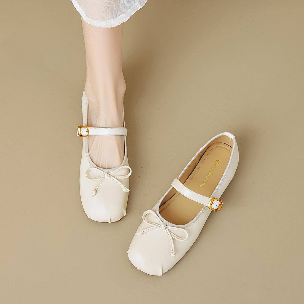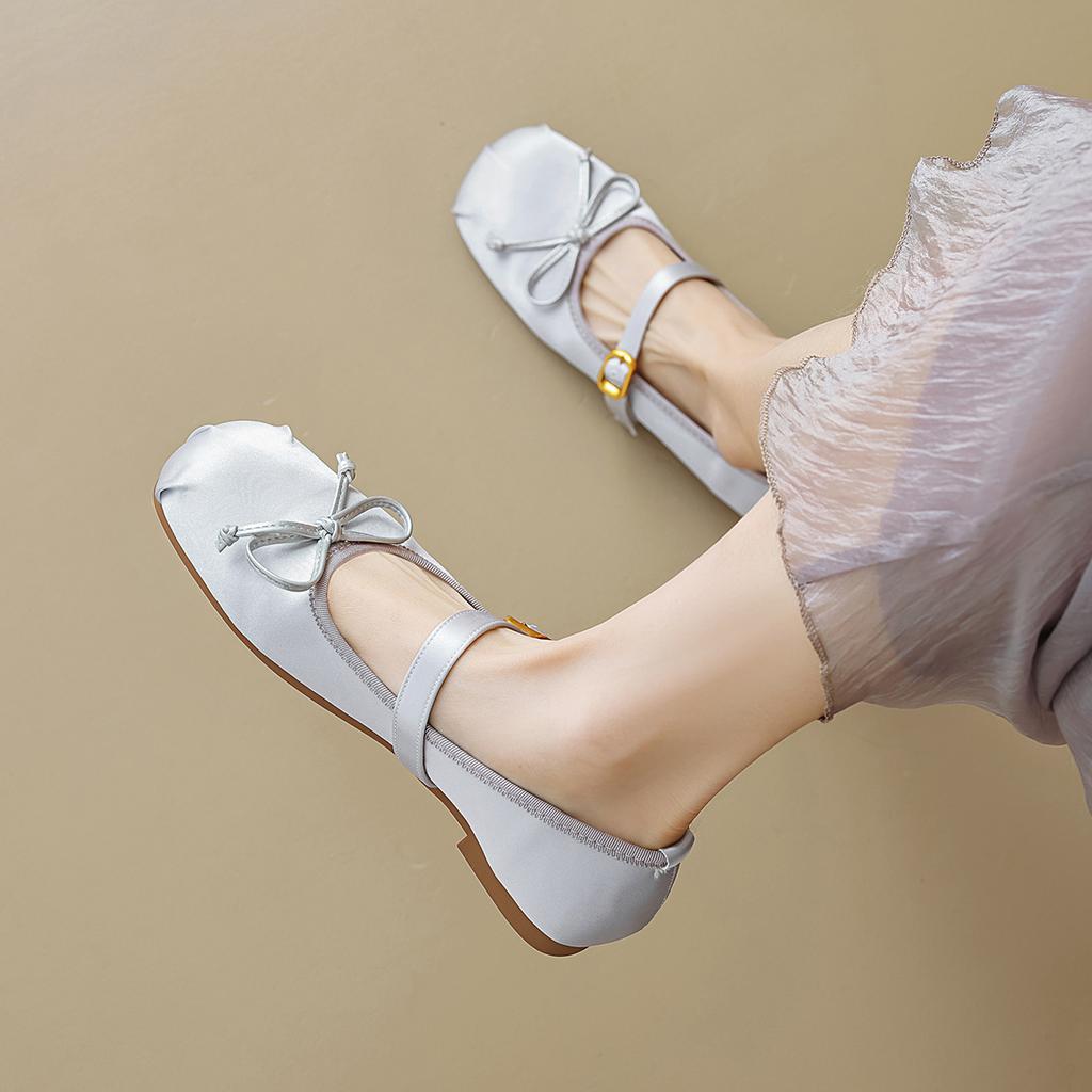 Круглые балетки женские с одной ремешкой и мелким бантом в стиле французской феи