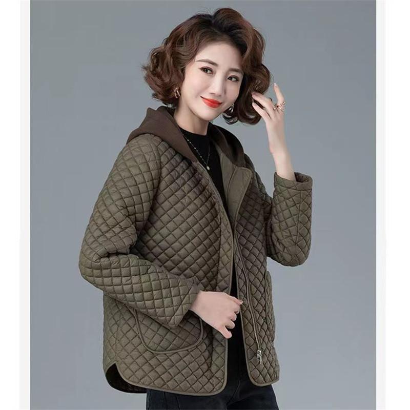 Модное легкое пальто с хлопковой подкладкой, женские парки, осенне-зимняя куртка с капюшоном, женская свободная повседневная клетчатая верхняя одежда