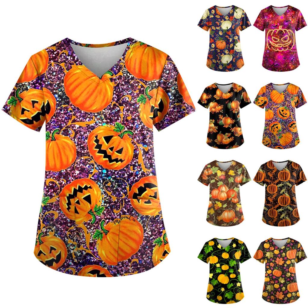 Женские топы с коротким рукавом и V-образным вырезом для Хэллоуина, карманные рабочие футболки — купить товар онлайн с бесплатной доставкой по всему миру!