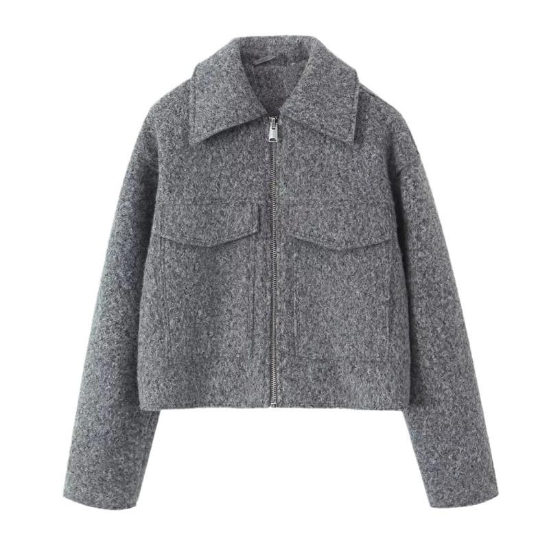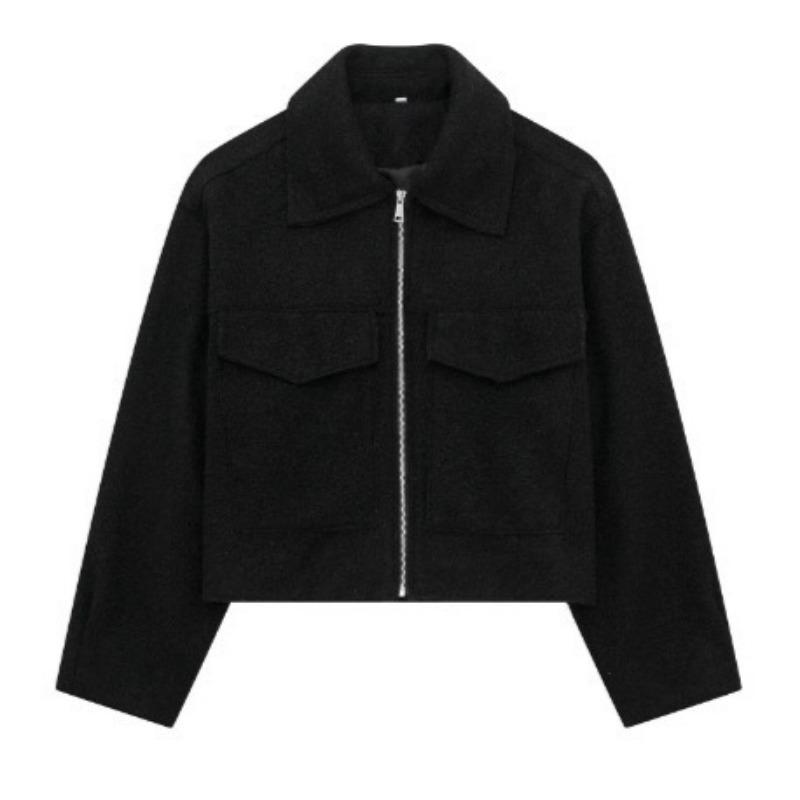 Осень и зима Новые повседневные теплые шерстяные пальто женские уличные модные карманы короткие куртки женские отложной воротник однотонные винтажные женские куртки пальто 25082