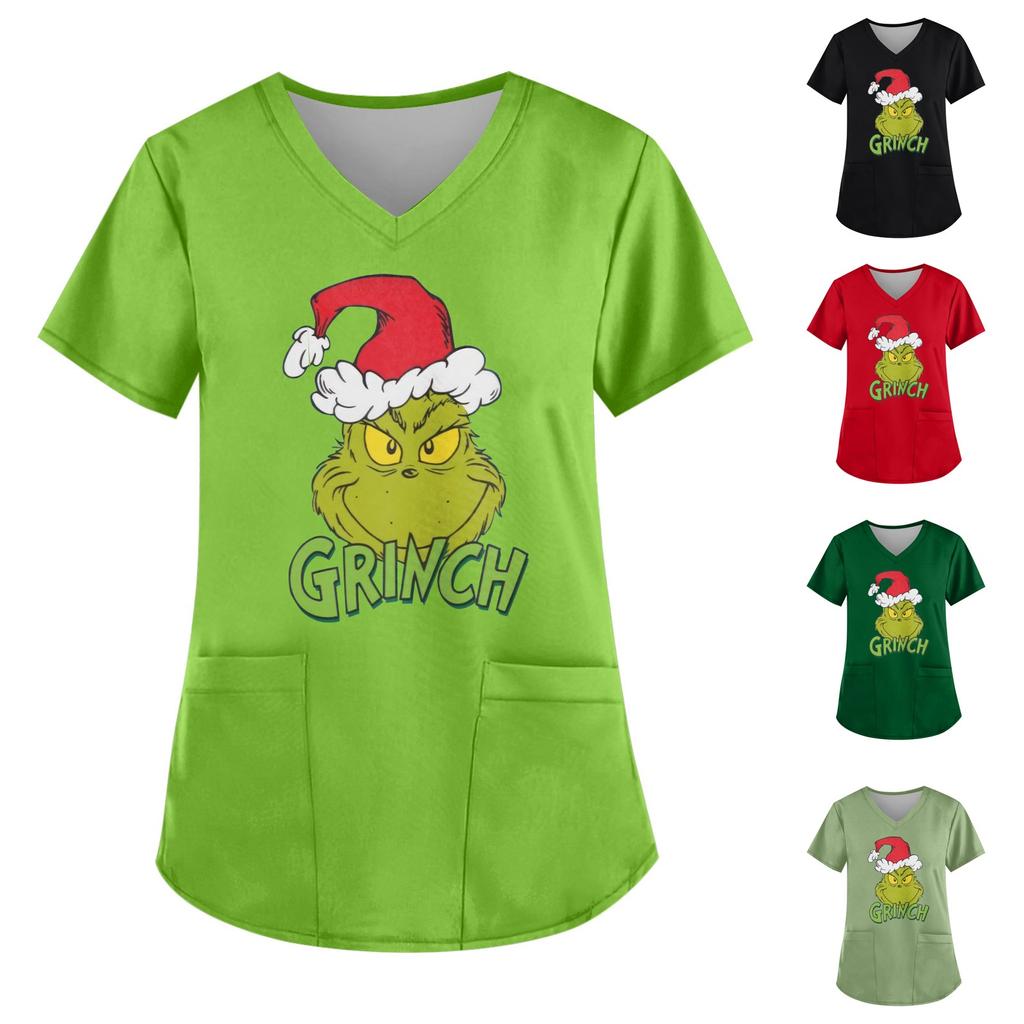 Плюс Размер Печатный Рабочий Униформа Топы Для Женщин Крест V-образный вырез Печати Короткий Рукав Забавные Футболки Рабочая Одежда Футболка С Карманами