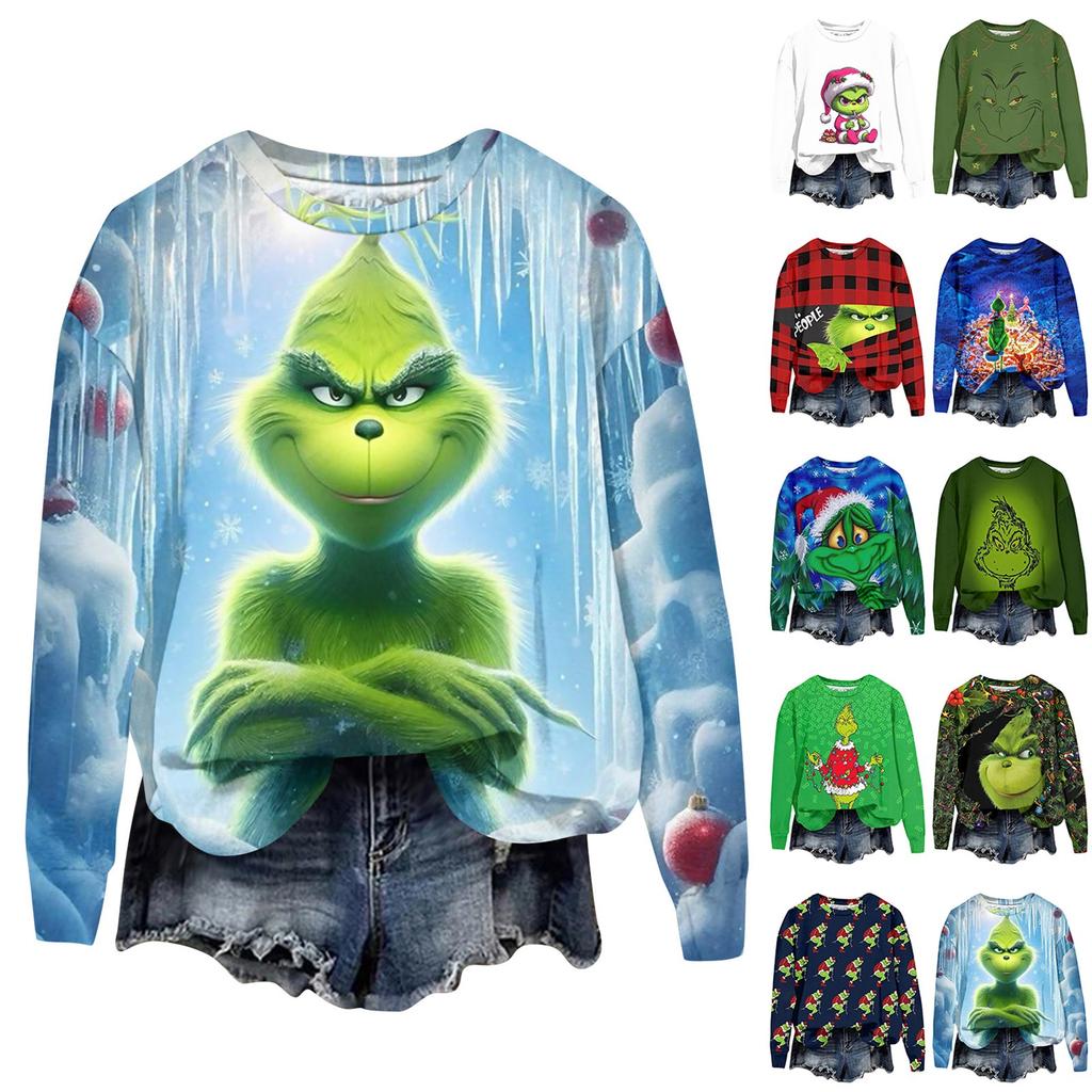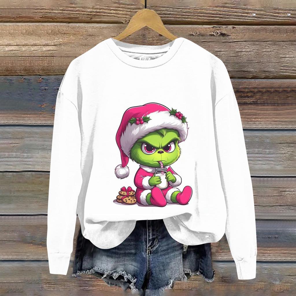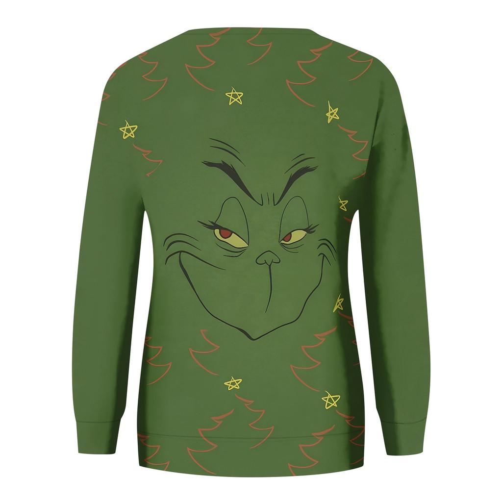 Женская модная рождественская принтованная толстовка с длинным рукавом и круглым вырезом
