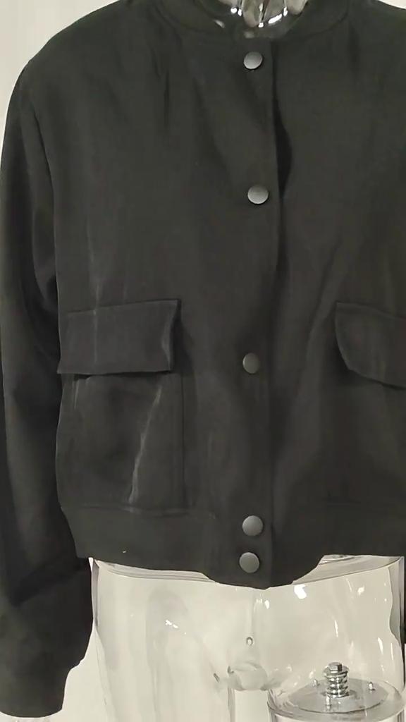 Осень Новые винтажные повседневные женские куртки с воротником-стойкой, зимние повседневные свободные пальто с длинным рукавом, женские однотонные карманы, короткая куртка на пуговицах, пальто 25087