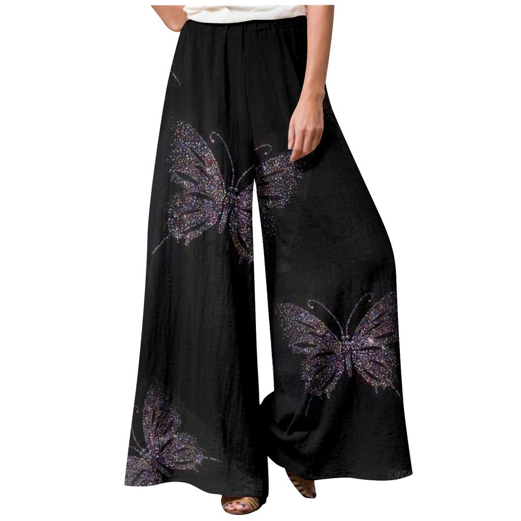 Женские модные свободные повседневные повседневные брюки с эластичной резинкой на талии и широкими штанинами без карманов