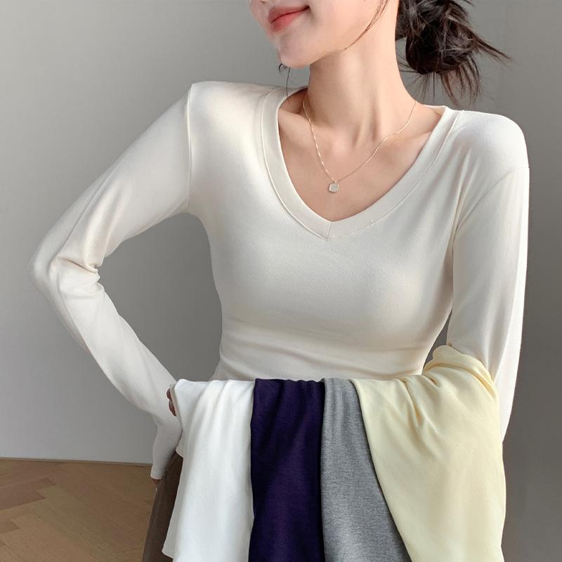 Футболка с воротником Love Collar Base, внутренний и внешний дизайн, белая футболка с длинными рукавами и V-образным вырезом спереди на плече