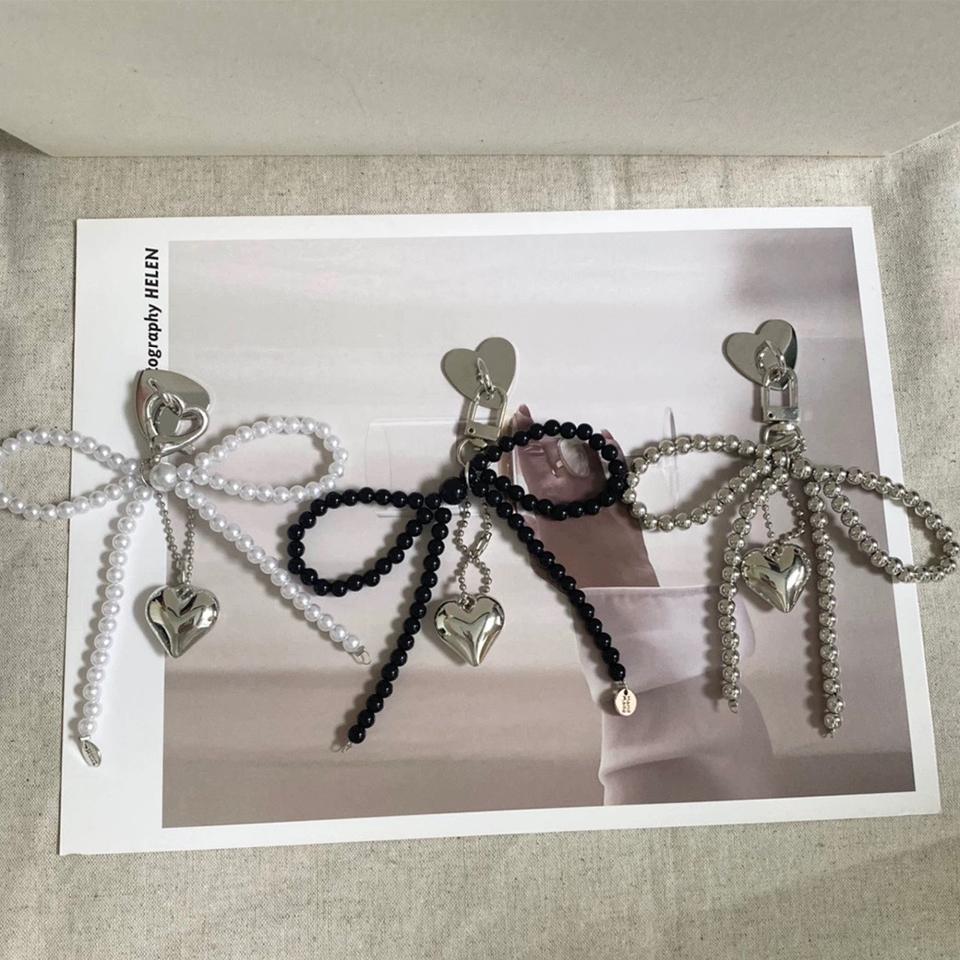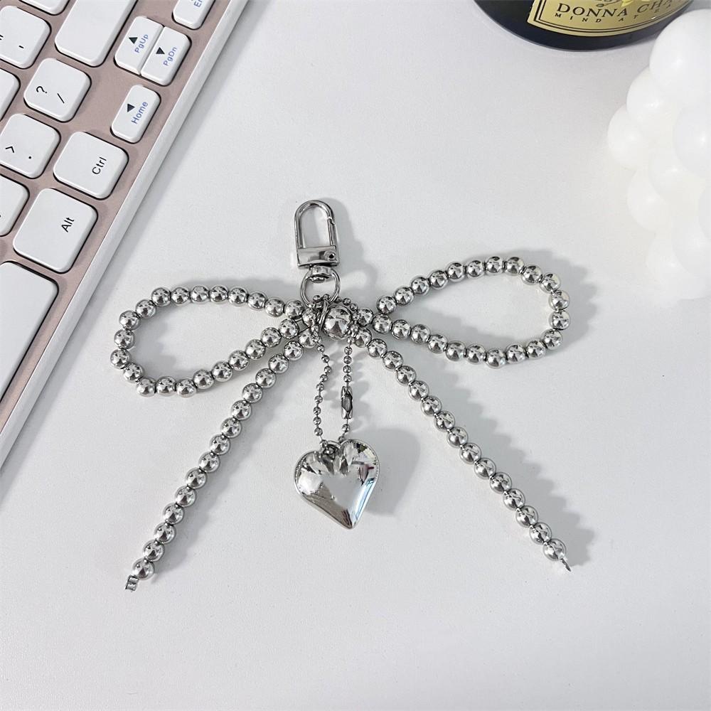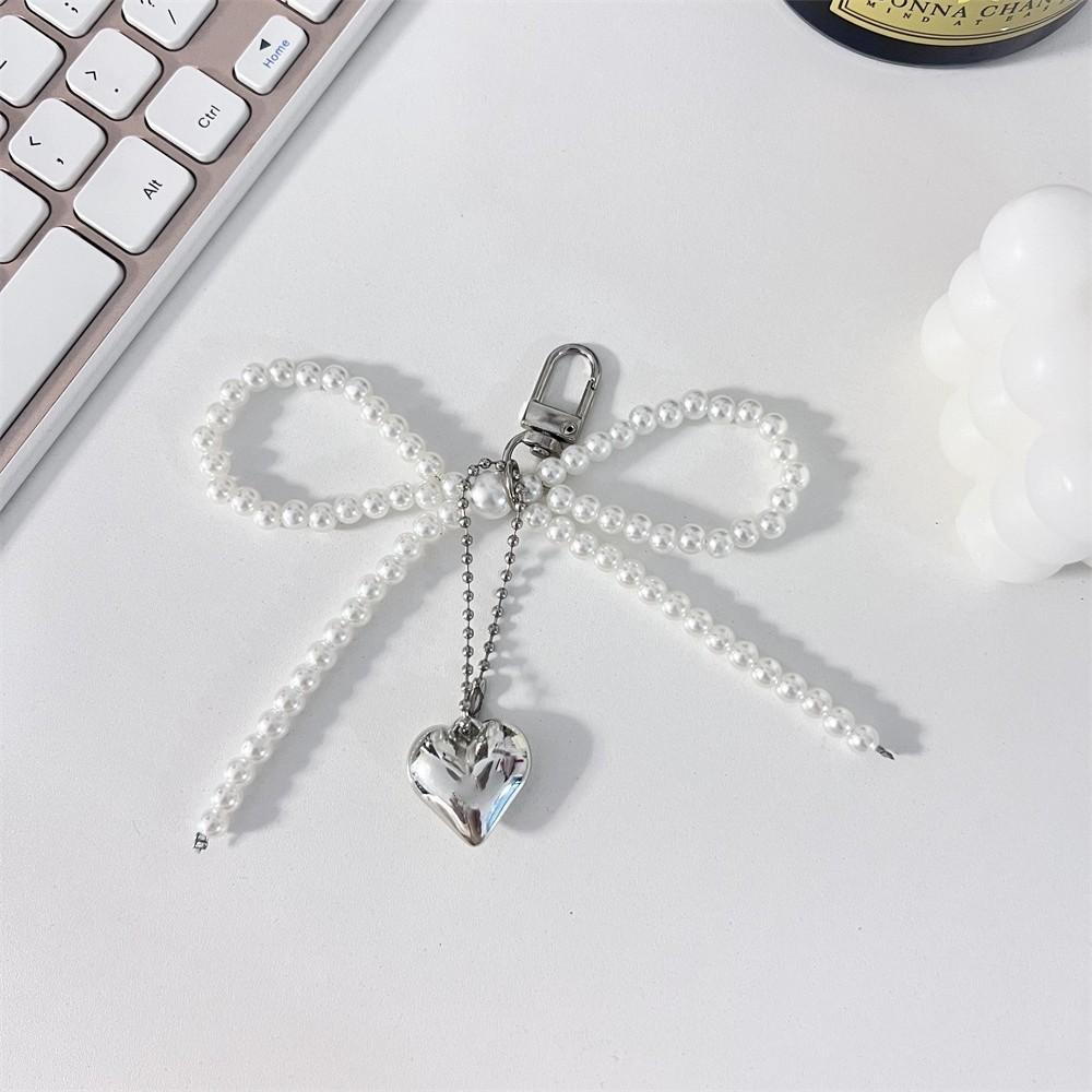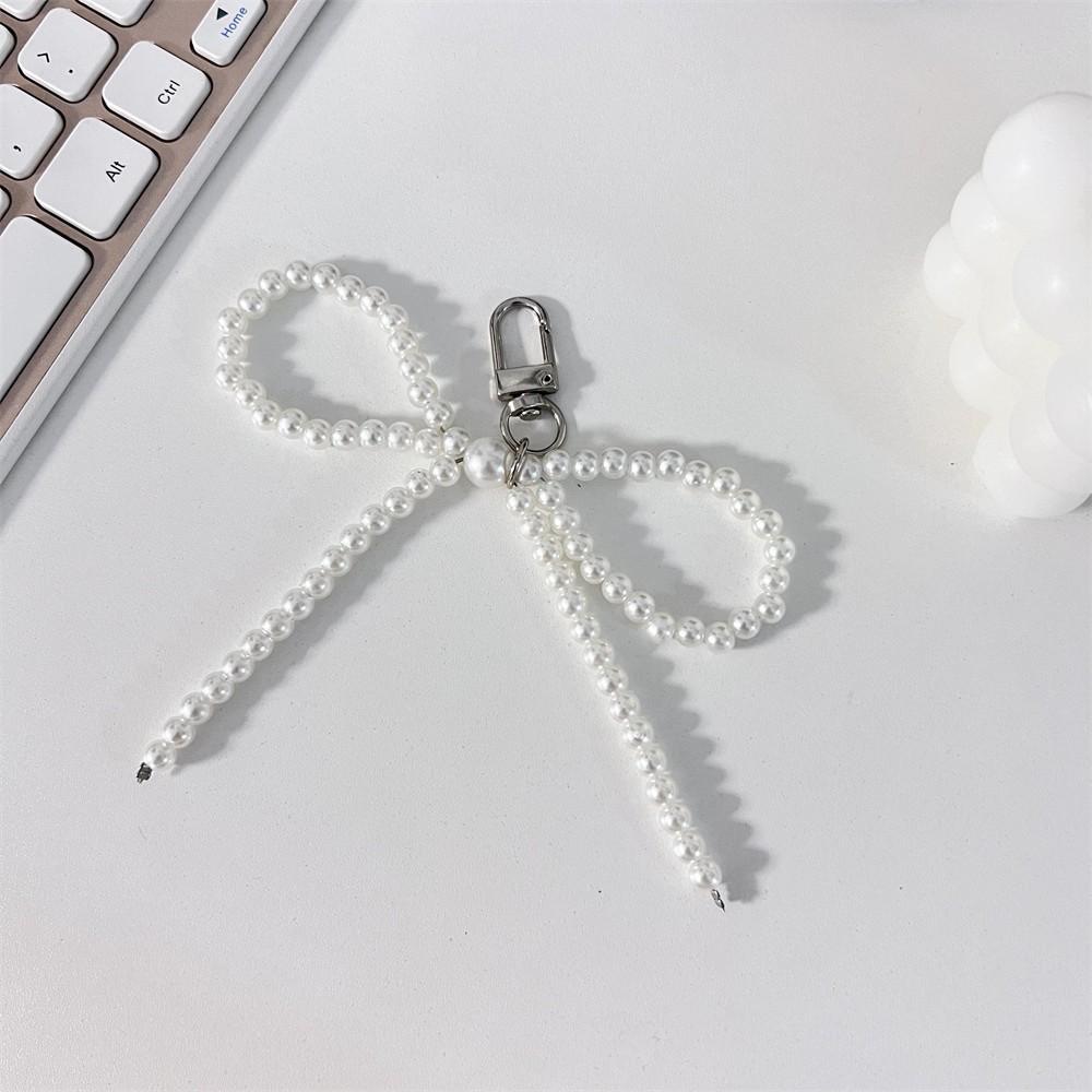 Нежный бисерный брелок для ключей с белым жемчугом, украшение в виде банта для сумок, телефонов, корейские модные аксессуары