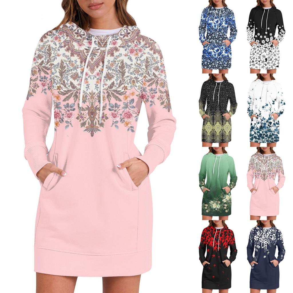 Женское платье-толстовка с капюшоном с длинным рукавом, платья с милым цветочным принтом, повседневная толстовка с капюшоном и карманами, осень и зима — купить товар онлайн с бесплатной доставкой по всему миру!