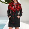 Женское платье-толстовка с капюшоном с длинным рукавом, платья с милым цветочным принтом, повседневная толстовка с капюшоном и карманами, осень и зима