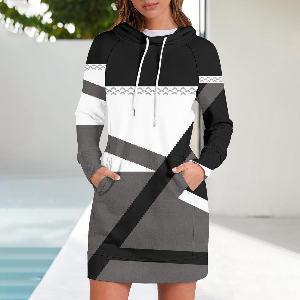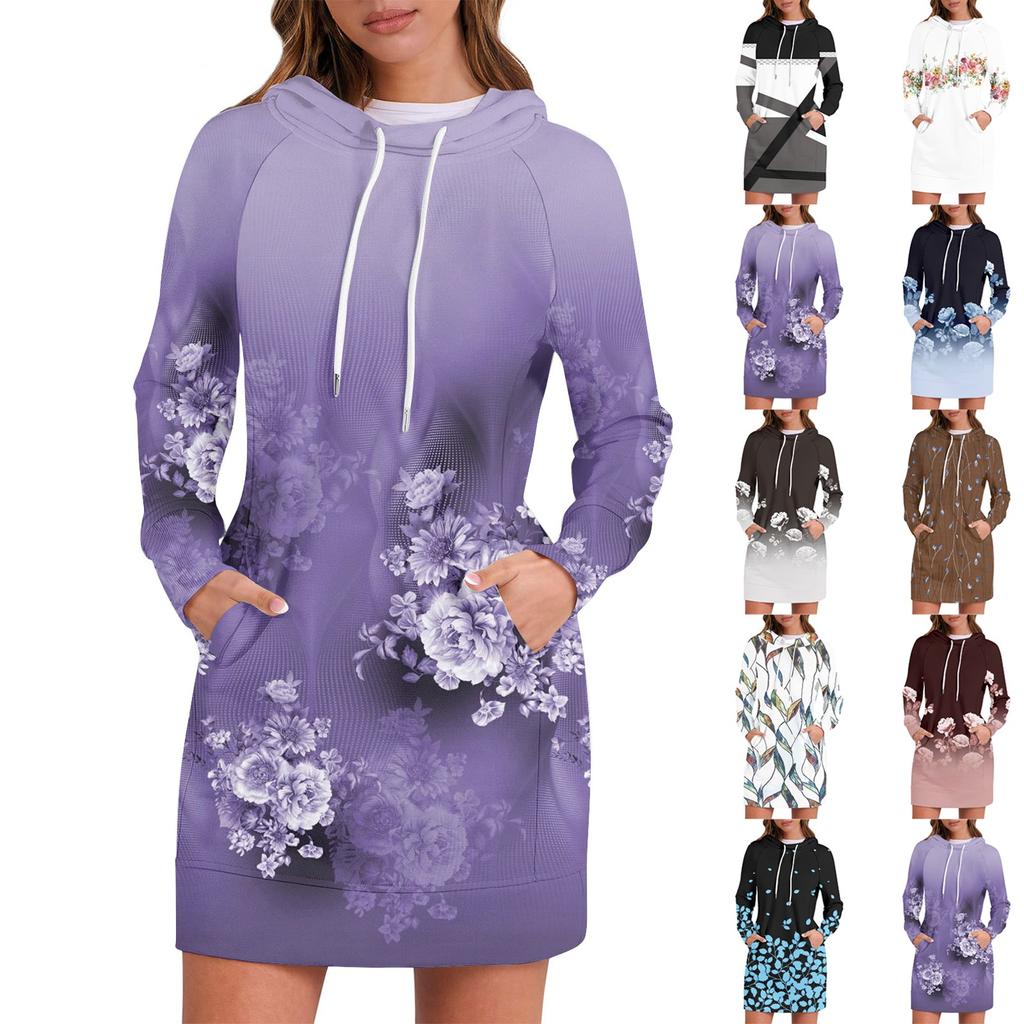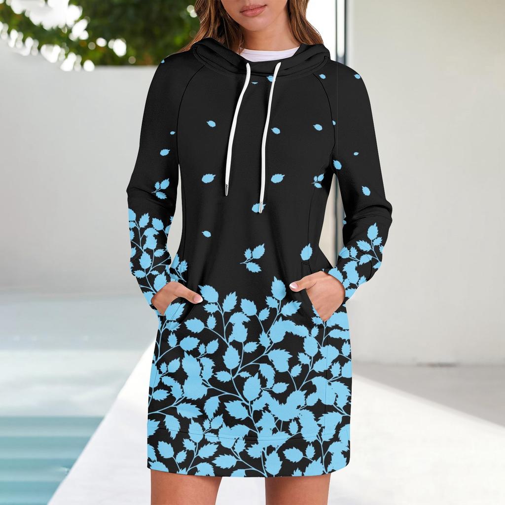 Женские осенние топы с длинными рукавами и цветочным принтом, с круглым вырезом, в стиле пэчворк, повседневные платья с капюшоном и рукавом реглан