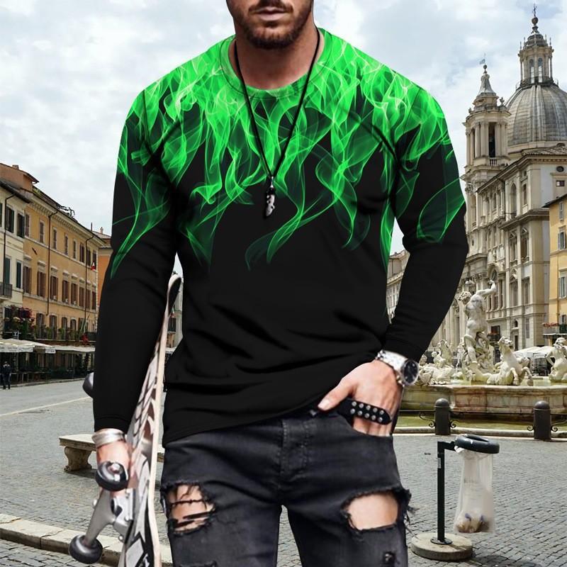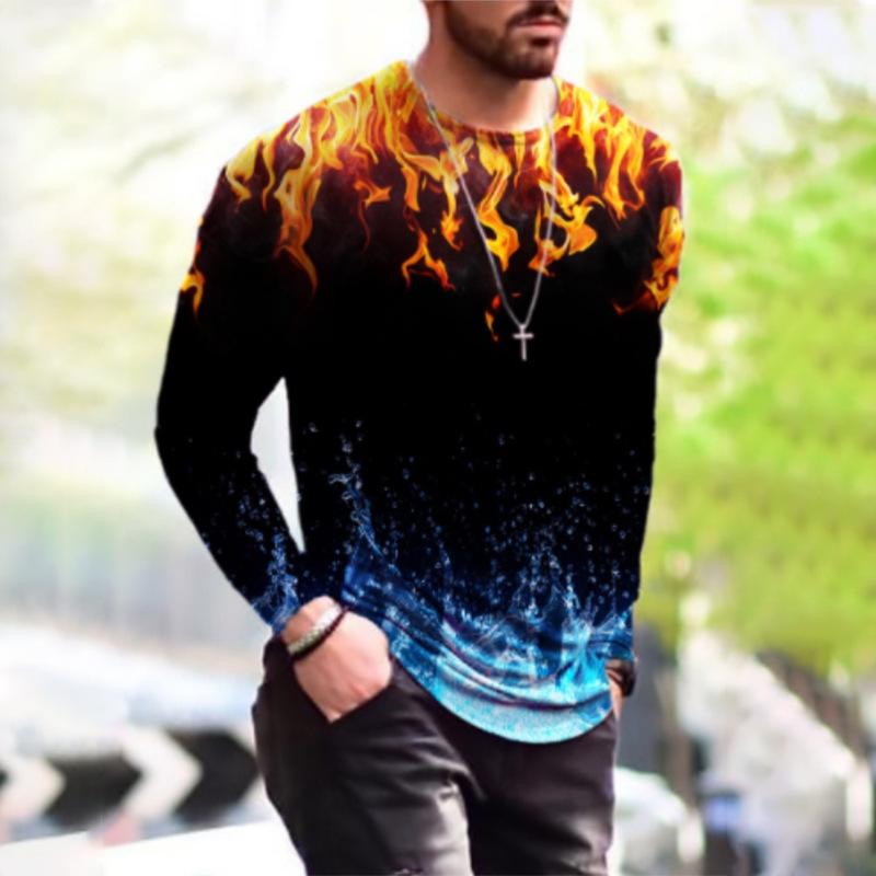 3D цифровой узор пламени принт мужской длинный рукав круглый вырез футболка весна осень мужчины бег фитнес спортивные топы футболка