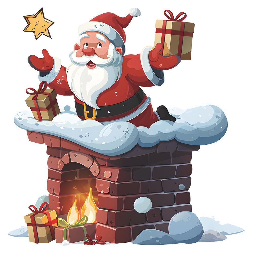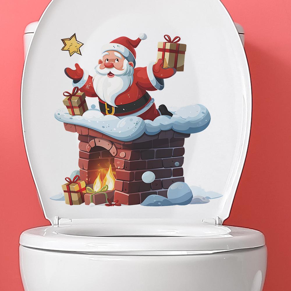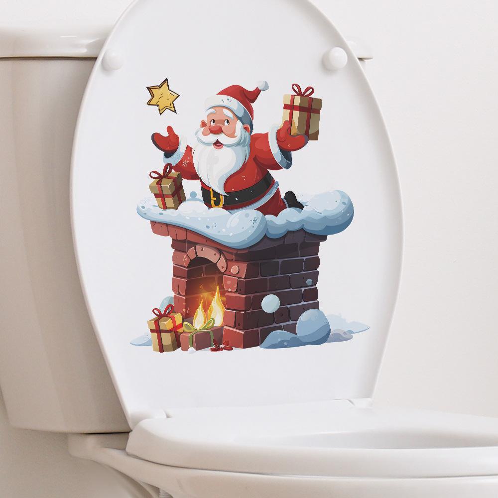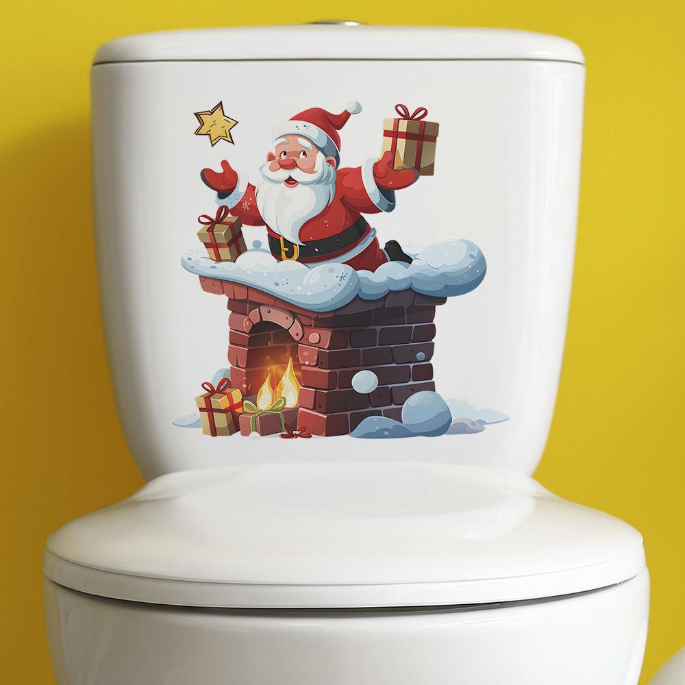 Мультфильм Санта-Клаус Подарки на камине Наклейки на туалет Наклейки на туалет для ванной комнаты Украшения для дома