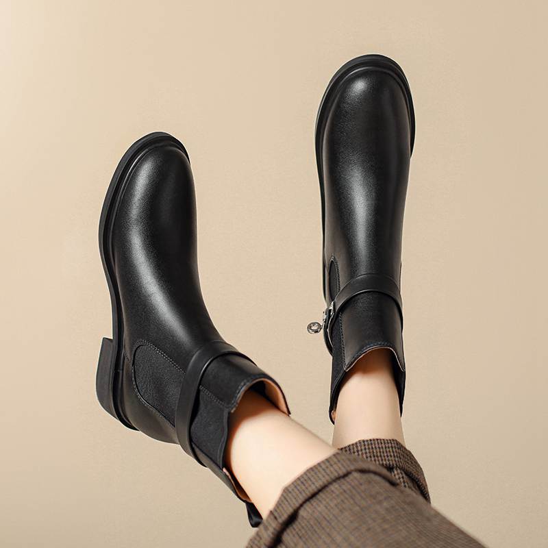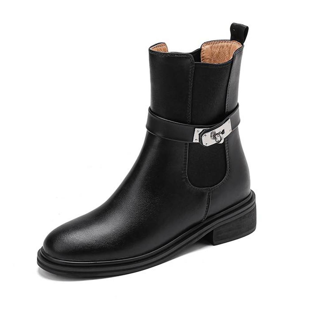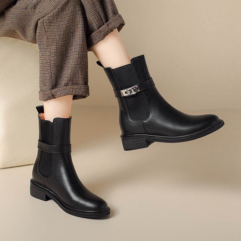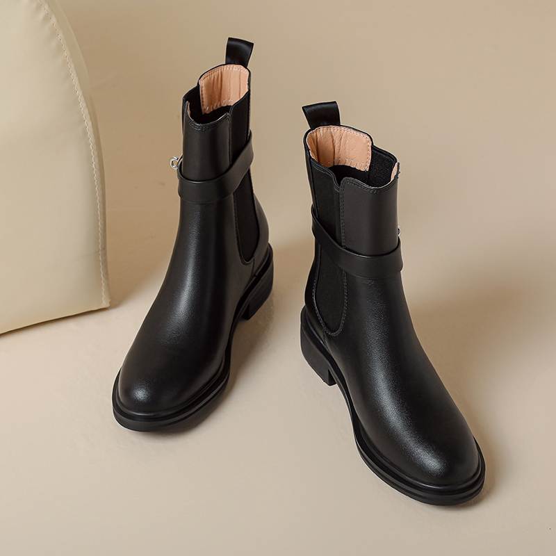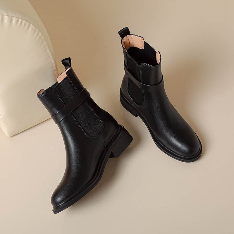 Krazing Pot Осенне-зимняя обувь из коровьей кожи Ботинки «Челси» с круглым носком, сохраняющие тепло, без застежек, на низком каблуке, ботильоны