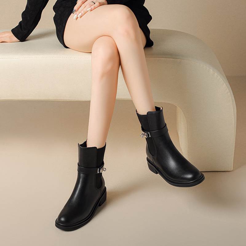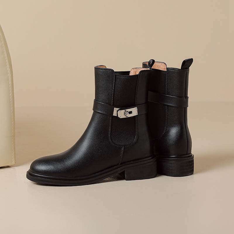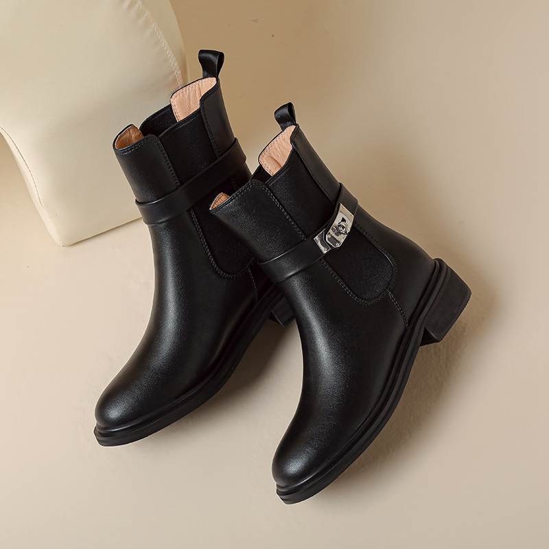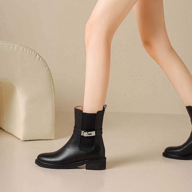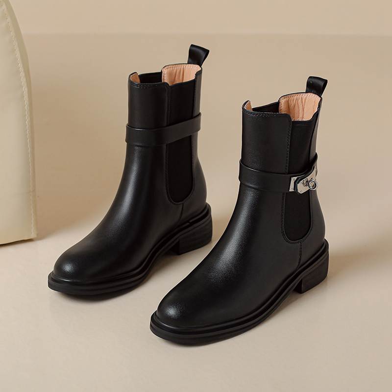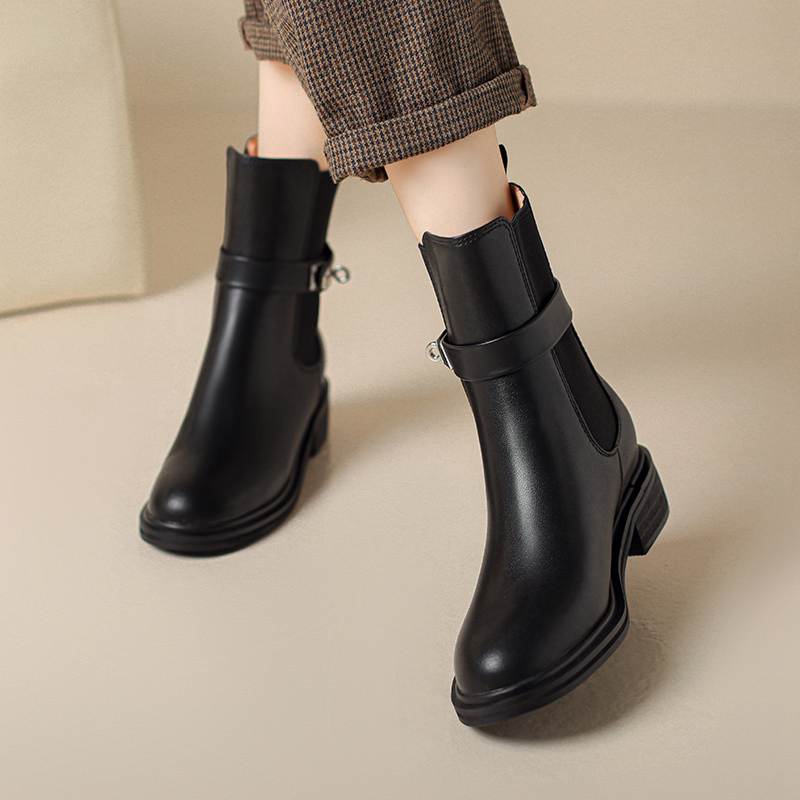 Krazing Pot Осенне-зимняя обувь из коровьей кожи Ботинки «Челси» с круглым носком, сохраняющие тепло, без застежек, на низком каблуке, ботильоны
