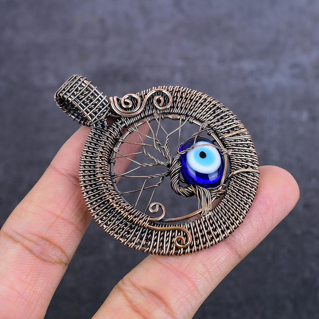 Синий сглаз драгоценный камень ручная работа медная проволока обертка ювелирное изделие кулон 2.60" u3q96