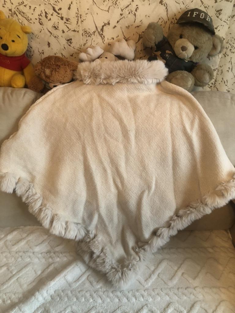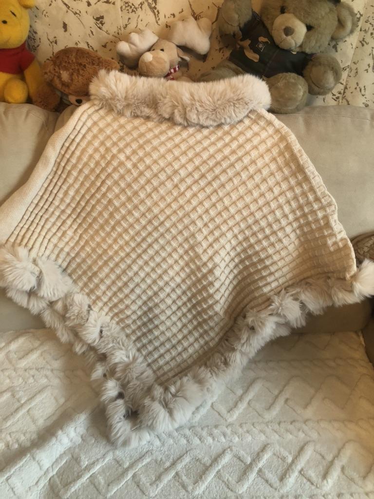 Красивое пончо. Но сидит плохо, всё время ёрзает туда -сюда. Очень большой вырез горловины. Чуть переделаю и всё сядет как надо