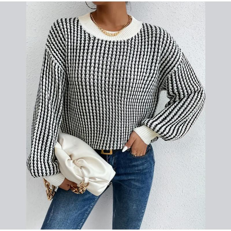 Женский свитер в клетку, повседневный, утолщенный, с круглым вырезом, свободный, женский трикотаж, весна-осень — купить товар онлайн с бесплатной доставкой по всему миру!