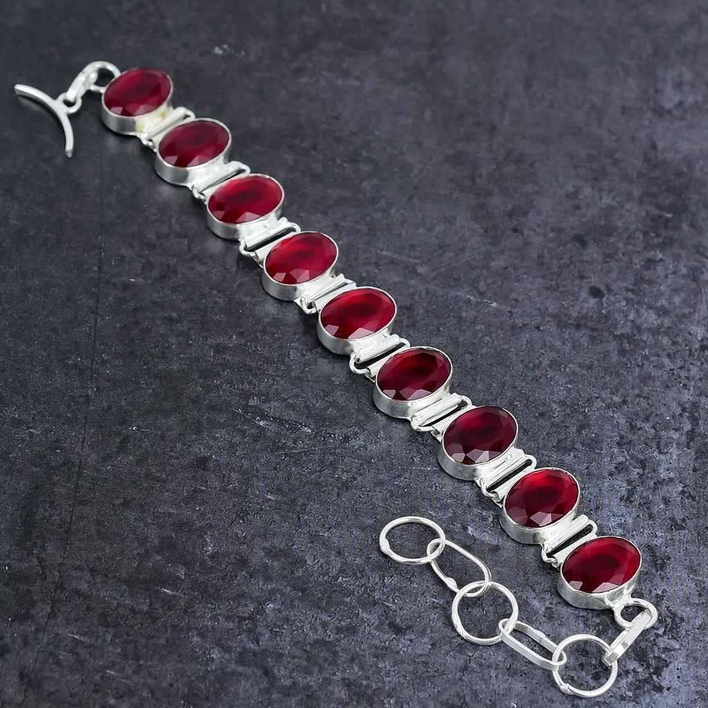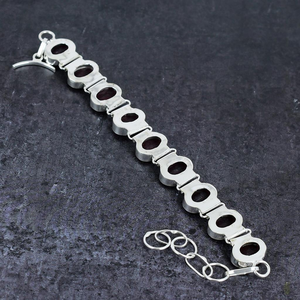 Мозамбикский гранат Драгоценный камень Ручная работа Серебро 925 пробы Браслет 7-8" W3d38