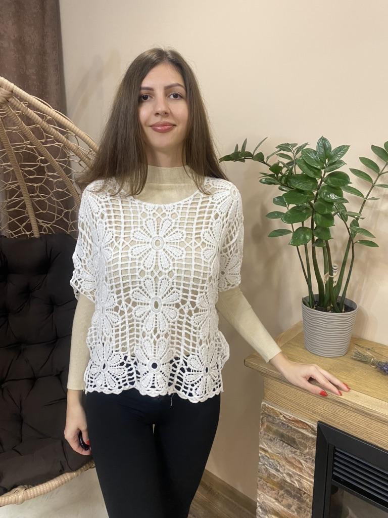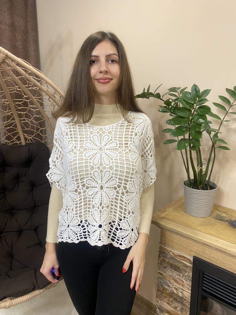 Кружевная белая кофточка — это элегантный и универсальный элемент гардероба. Лёгкий и нежный материал красиво подчёркивает фигуру, добавляя образу женственности и утончённости. Кружево выполнено аккуратно, без торчащих ниток, что говорит о высоком качестве изделия.👍 Кофточка идеально сочетается с юбками, брюками или джинсами, подходя как для повседневного, так и для более нарядного образа.😍 Размер one size на параметры: 🌸объем груди - 86 см 🌸объем талии - 61 см 🌸рост 173 см 🌸вес 51 кг
