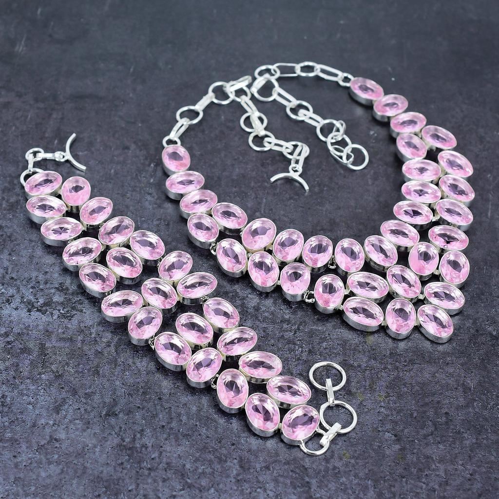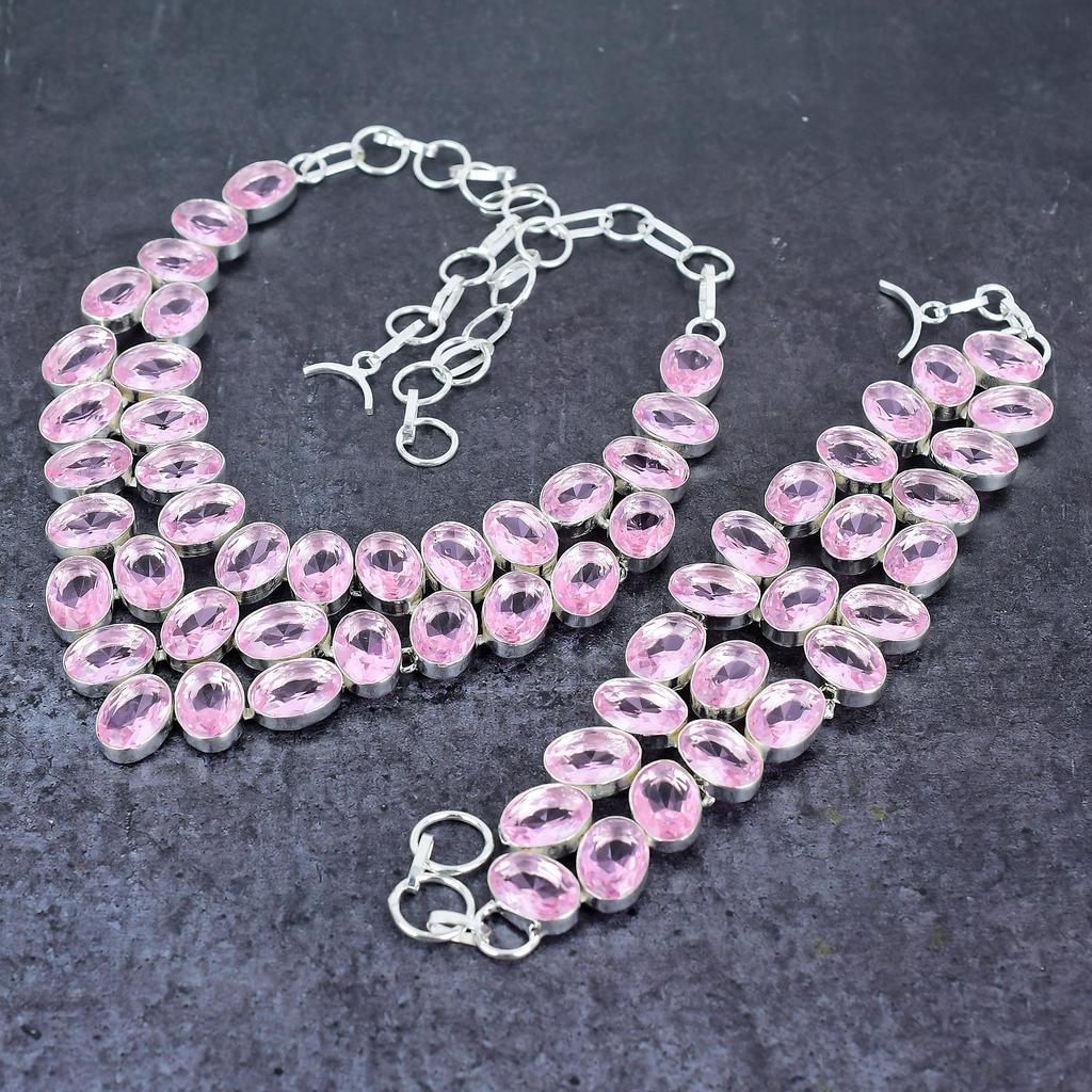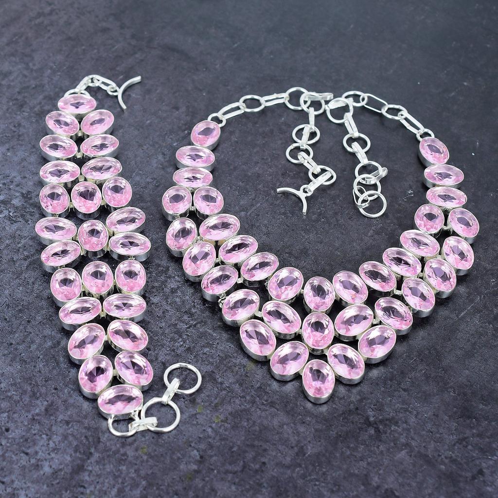 Комплект украшений ручной работы из серебра 925 пробы с розовым кунцитом o2n82