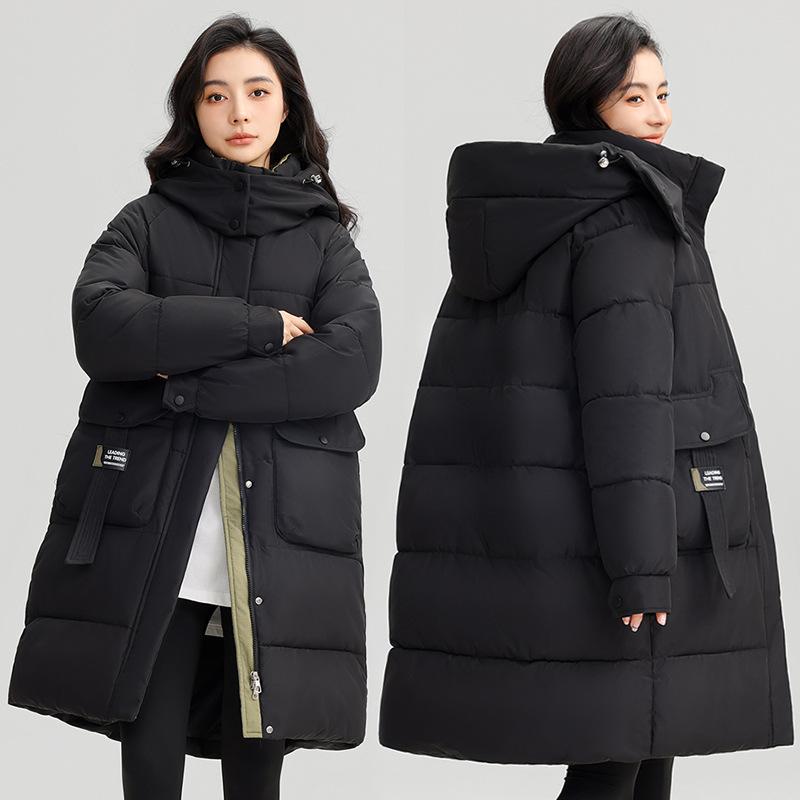 Пуховая хлопковая подстежка, женская длинная осенне-зимняя новая утолщенная свободная и тонкая куртка темперамент с хлопковой подкладкой