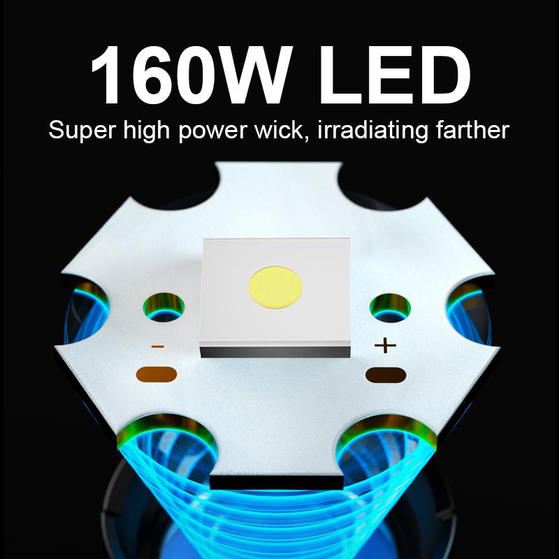 100000LM Высокомощный перезаряжаемый светодиодный фонарик Long Shot 2000M Супер яркий фонарь 160W LED Ультрамощные фонари COB Lights Водонепроницаемая лампа