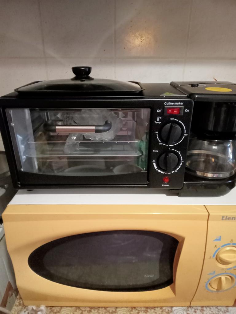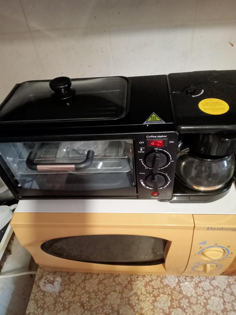 Электрическая машина пришла в хорошем состоянии. Сама машина была завернута в пакет,углы машины были обложены пенопластом на дне коробки также был пенопласт, потом эта коробка была вложена ещё в одну коробку, то есть упаковано качественно, внешний вид сохранился идеально, а в работе ещё не пробовала, напишу попозже. Машина хорошо работает,духовка хорошо греет, можно в ней выпекать не большие пироги, курицу запекать, да все что угодно, духовка работает до 230, градусов, а вот таймер работает только до 40 минут. Сковорода на верху машины также жарит хорошо, тоже можно жарить всё что угодно. Кофеварка тоже работает, функцию свою выполняет.К покупке однозначно рекомендую, очень удобная вещь.