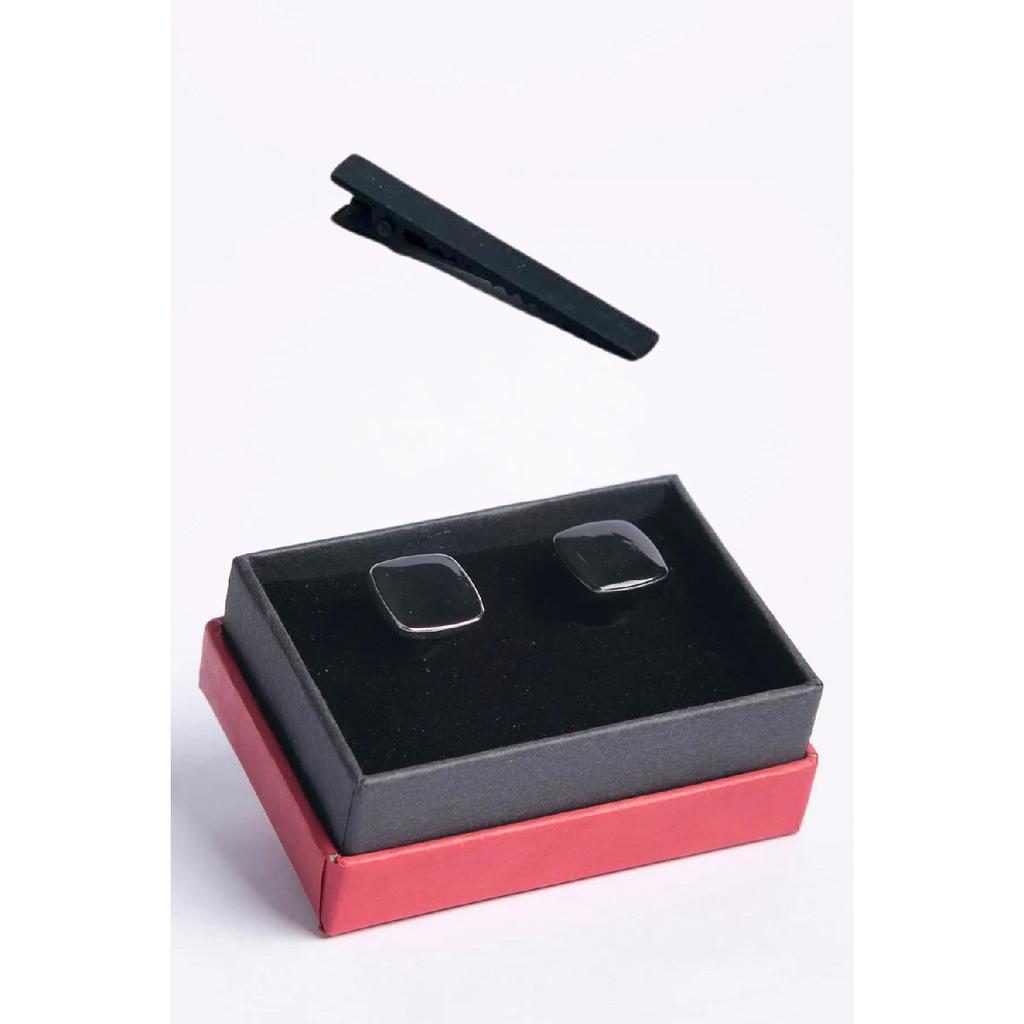 Квадратная запонка из блестящего черного камня с зажимом для галстука в подарок