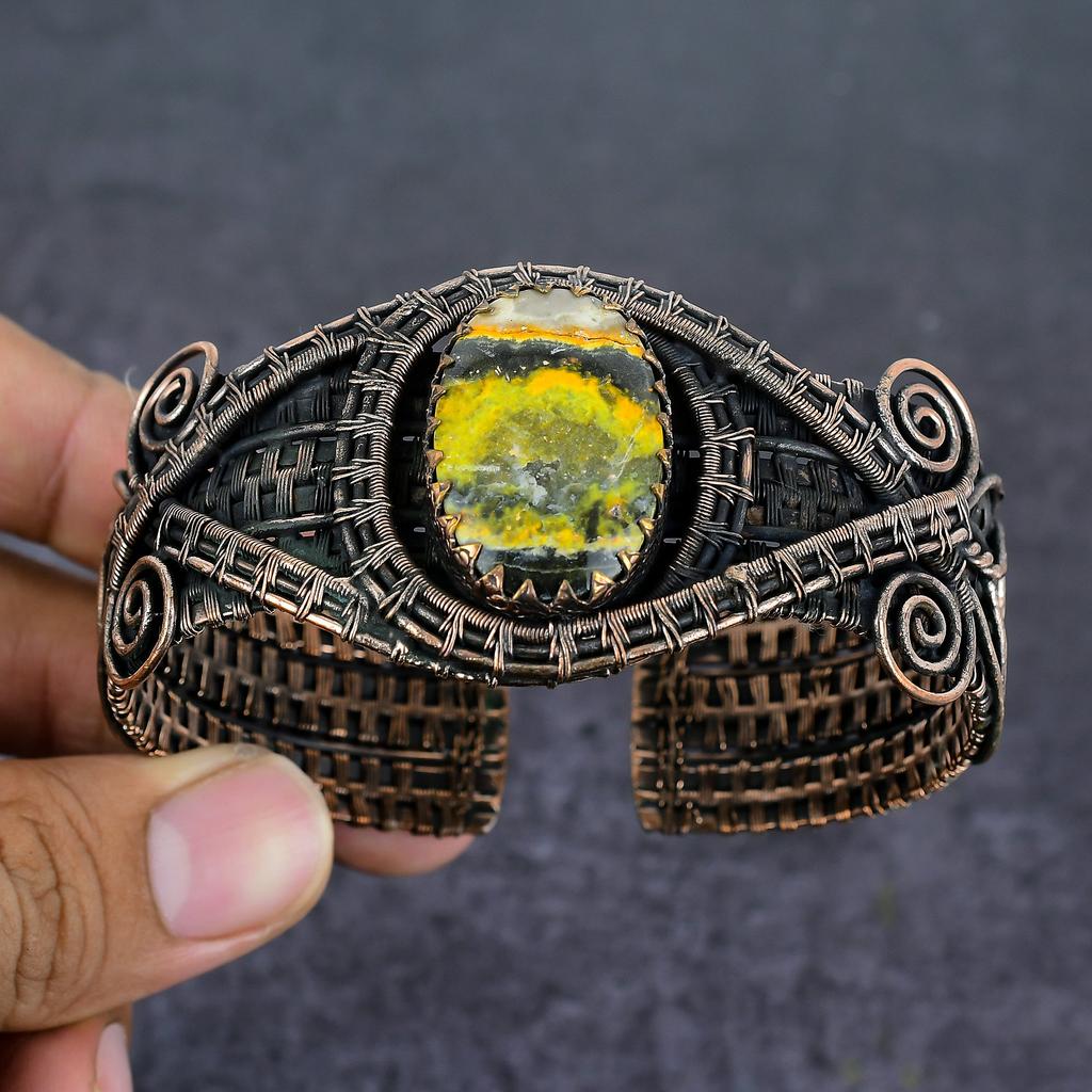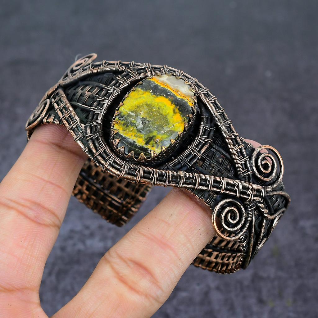 Браслет-манжета из медной проволоки с драгоценным камнем Bumble Bee Jasper, регулируемый, q7N10