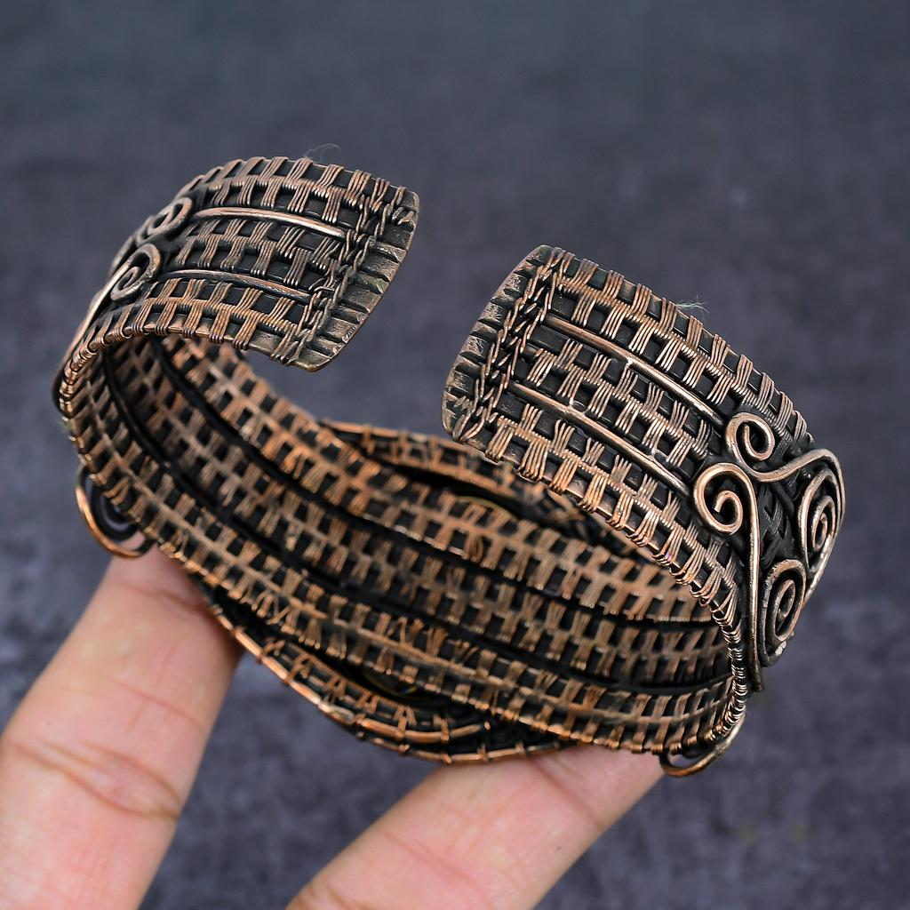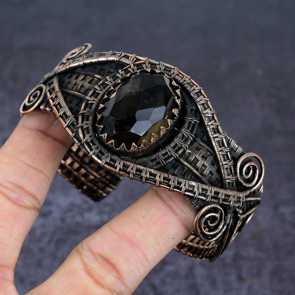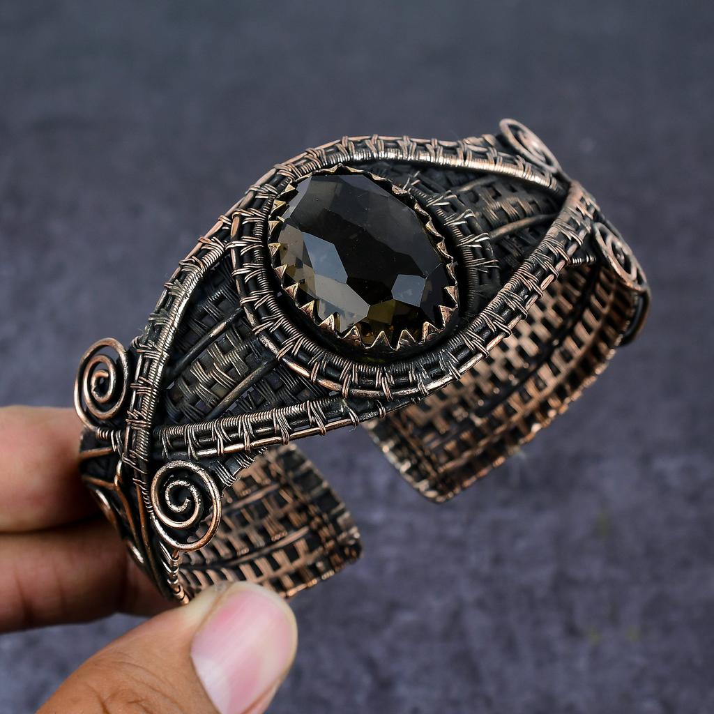 Дымчатый Топаз Драгоценный Камень Ручной Работы Медная Проволочная Оплетка Манжета Браслет Регулируемый E3q71