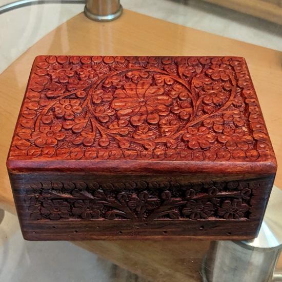 3. дизайн: Детализированные вырезанные вручную цветочные и традиционные узоры на внешней стороне придают этой шкатулке уникальность.