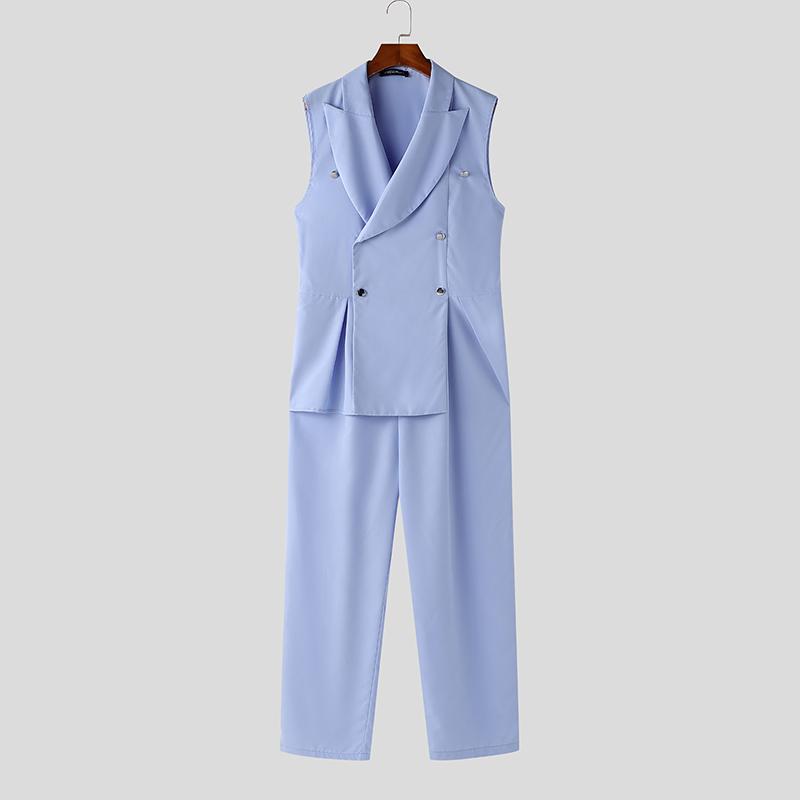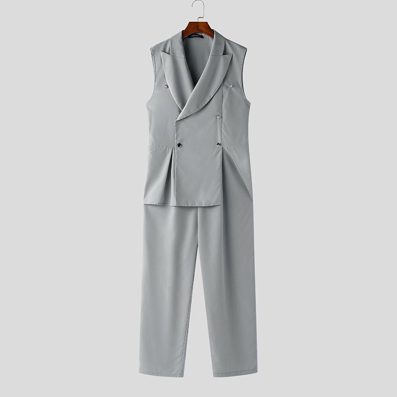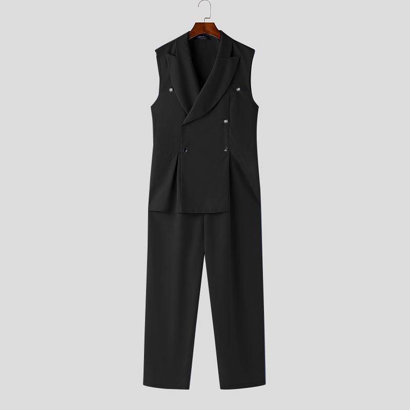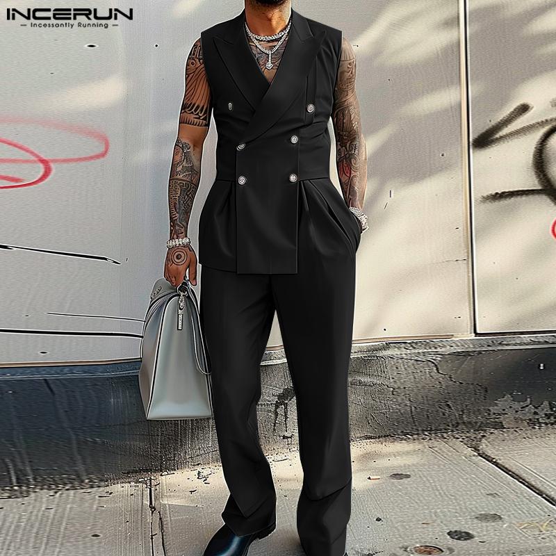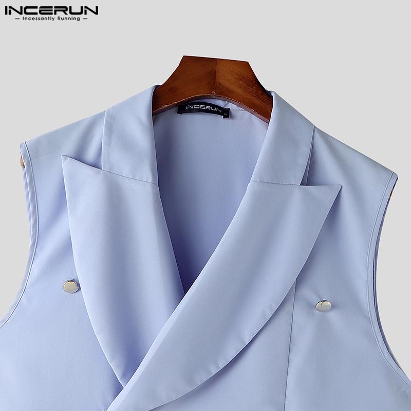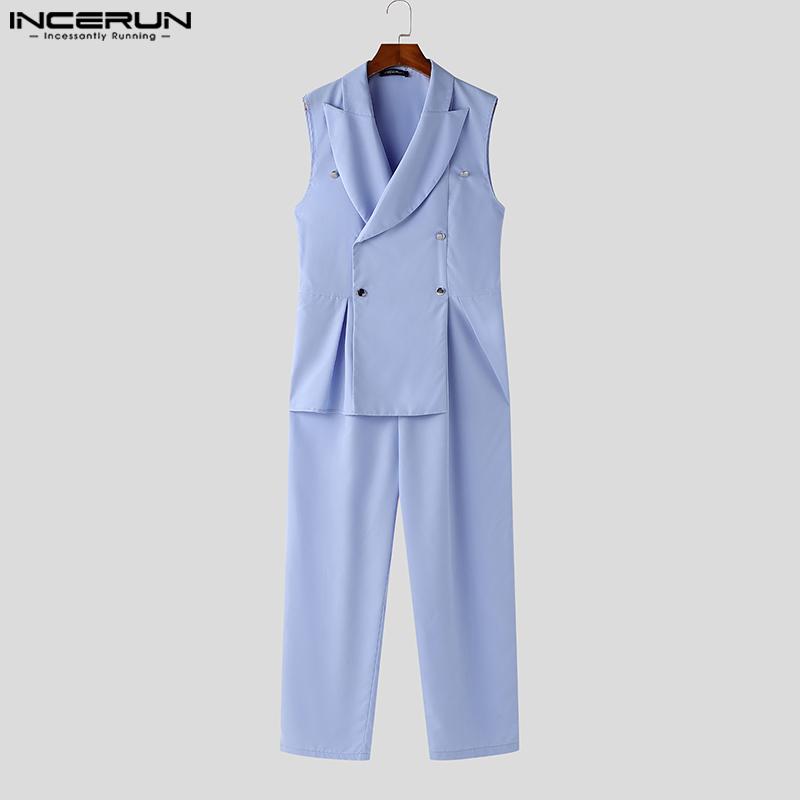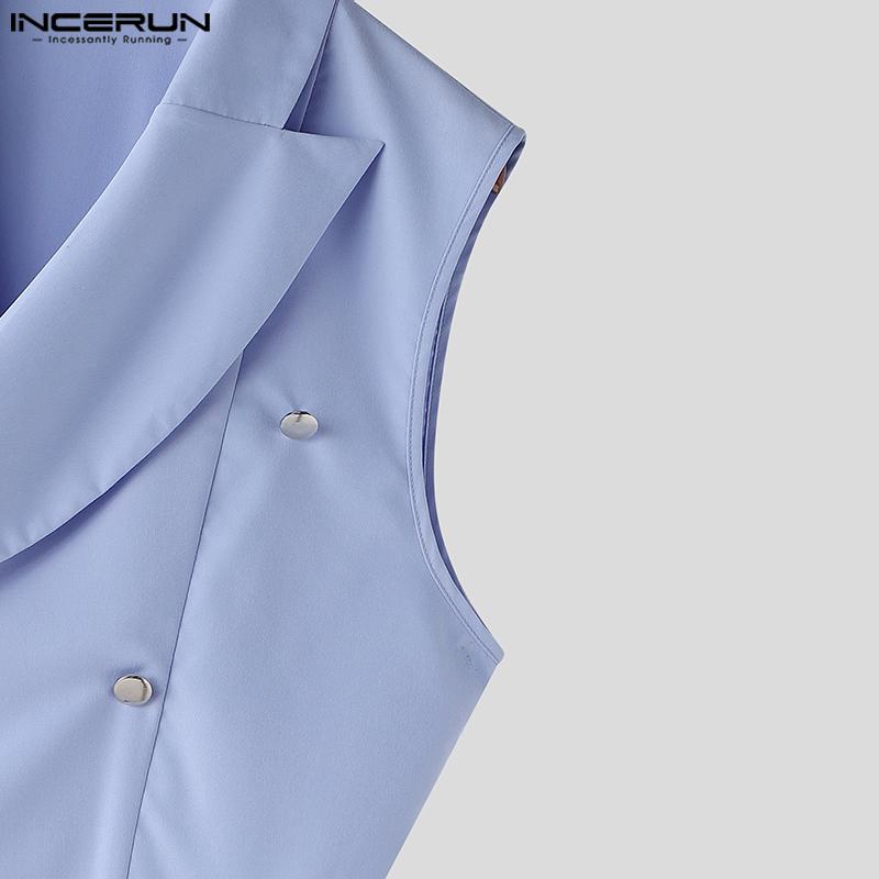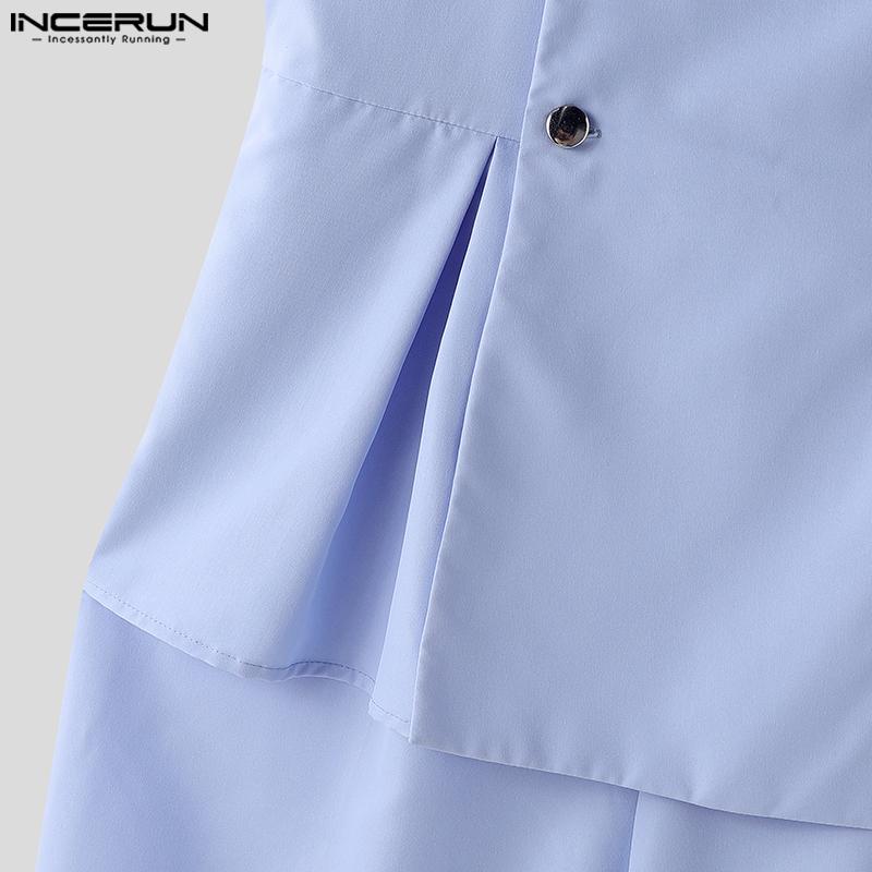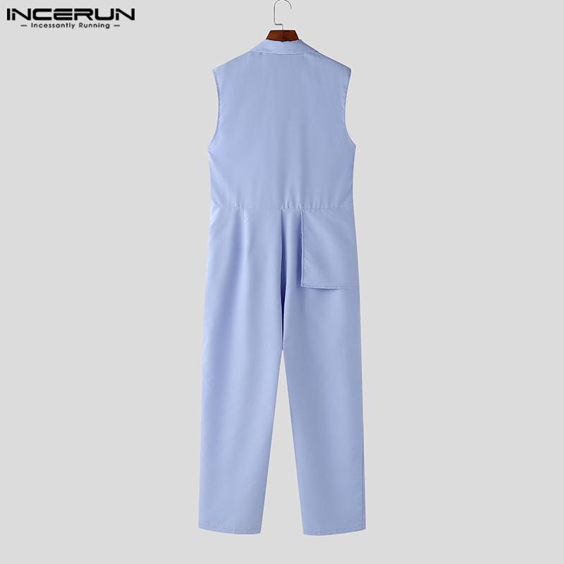 INCERUN Мужские длинные комбинезоны с V-образным вырезом и лацканами, повседневные однотонные комбинезоны на молнии