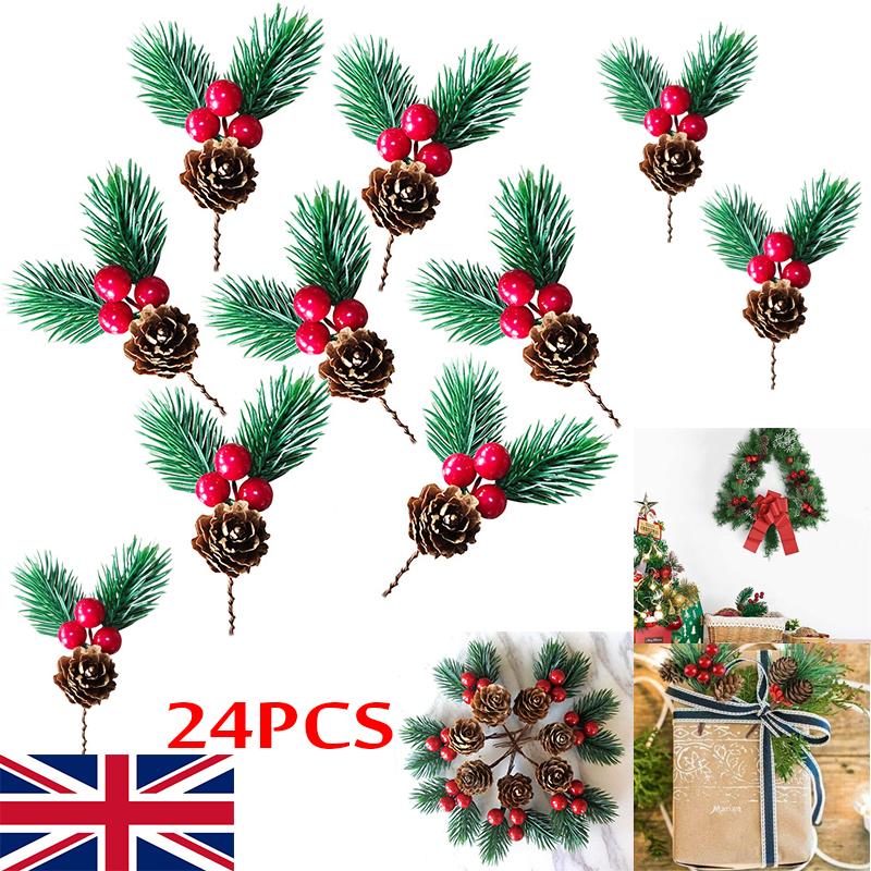 24 шт. Рождественский искусственный цветок красная ягода шишка падуб рождественский декор для вечеринки
