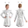 Костюм для косплея пришельцев для маленьких девочек, костюм милашки из космоса, металлическое платье с обручем для волос, наряд астронавта на Хэллоуин