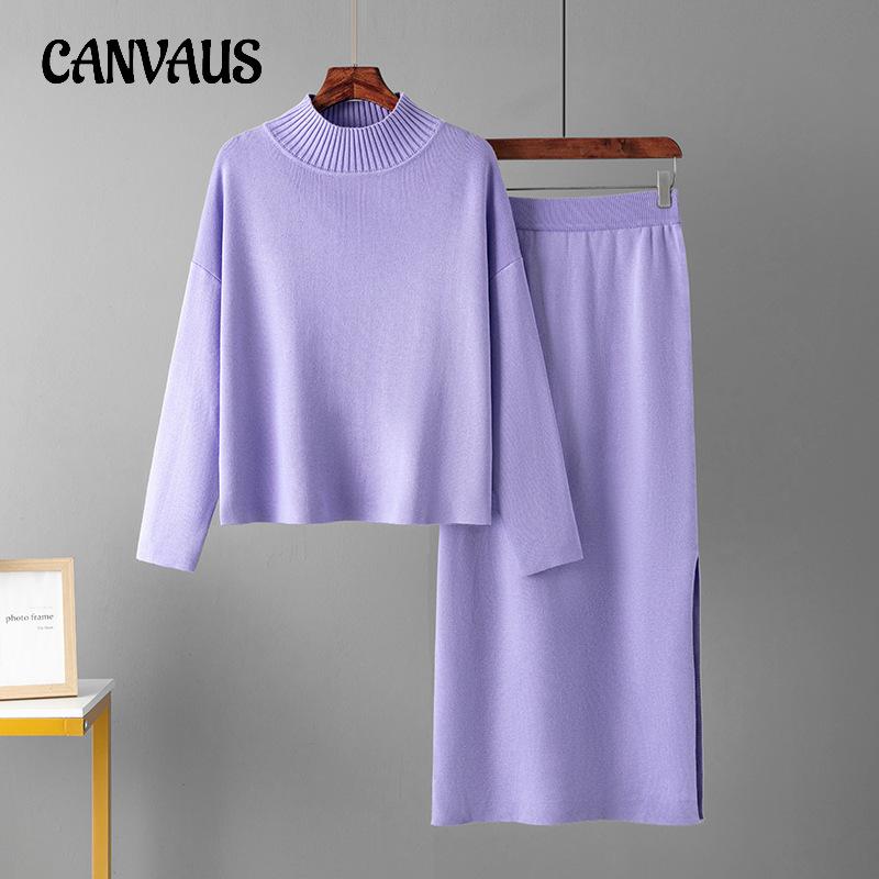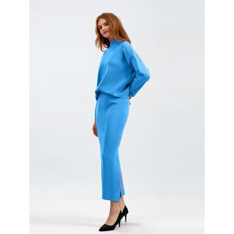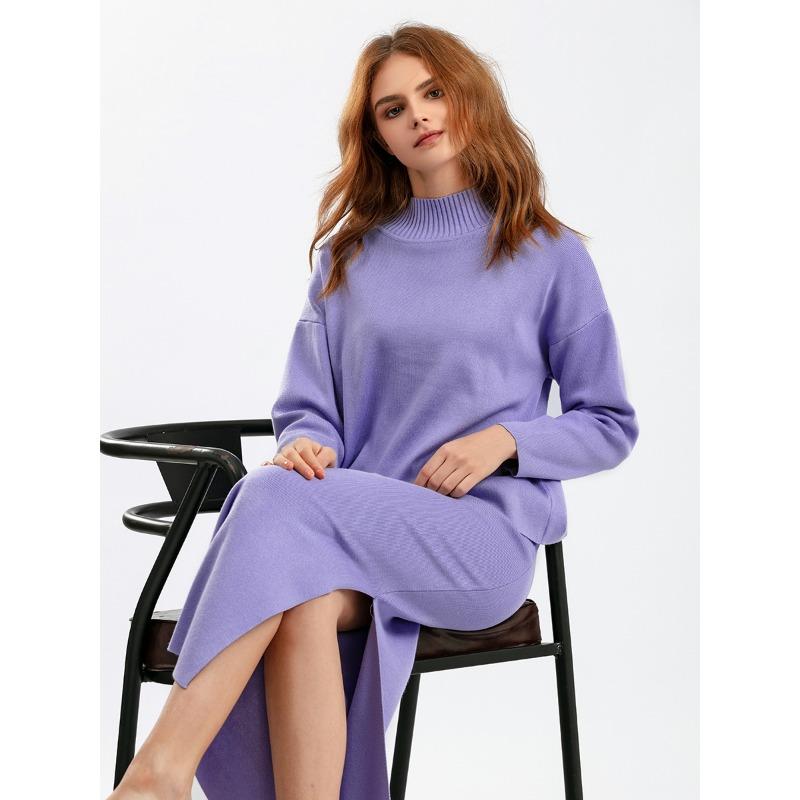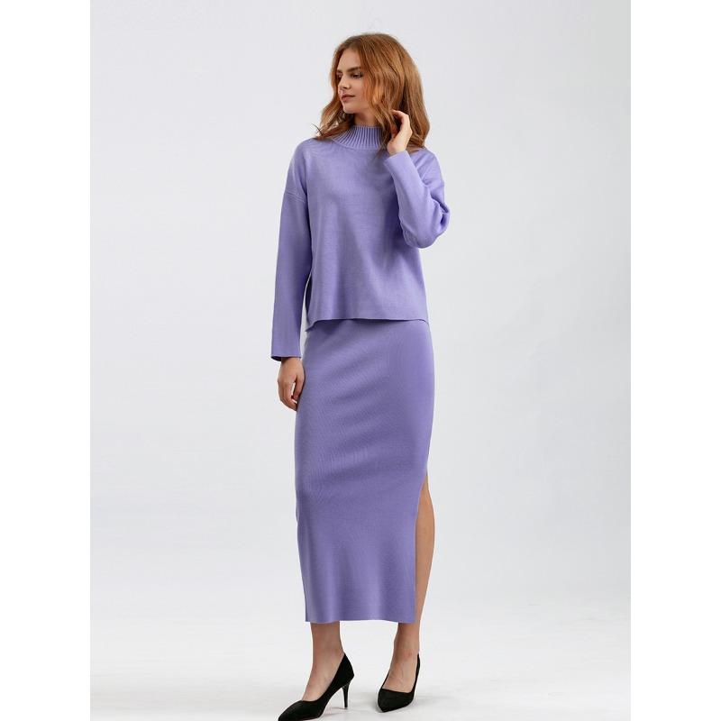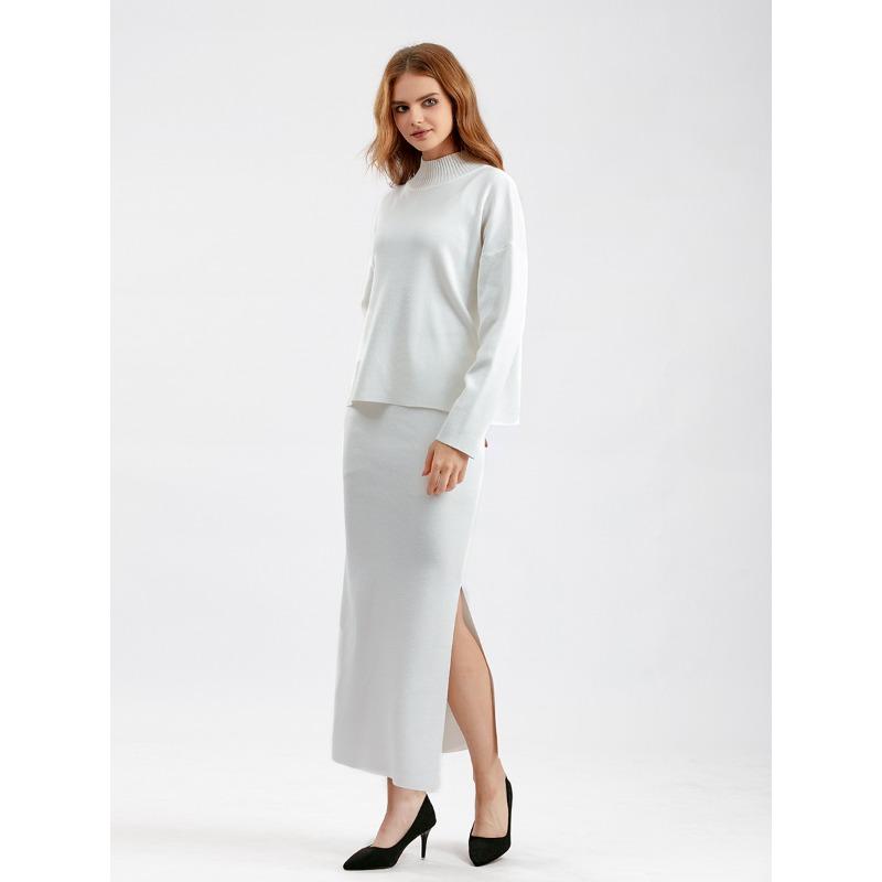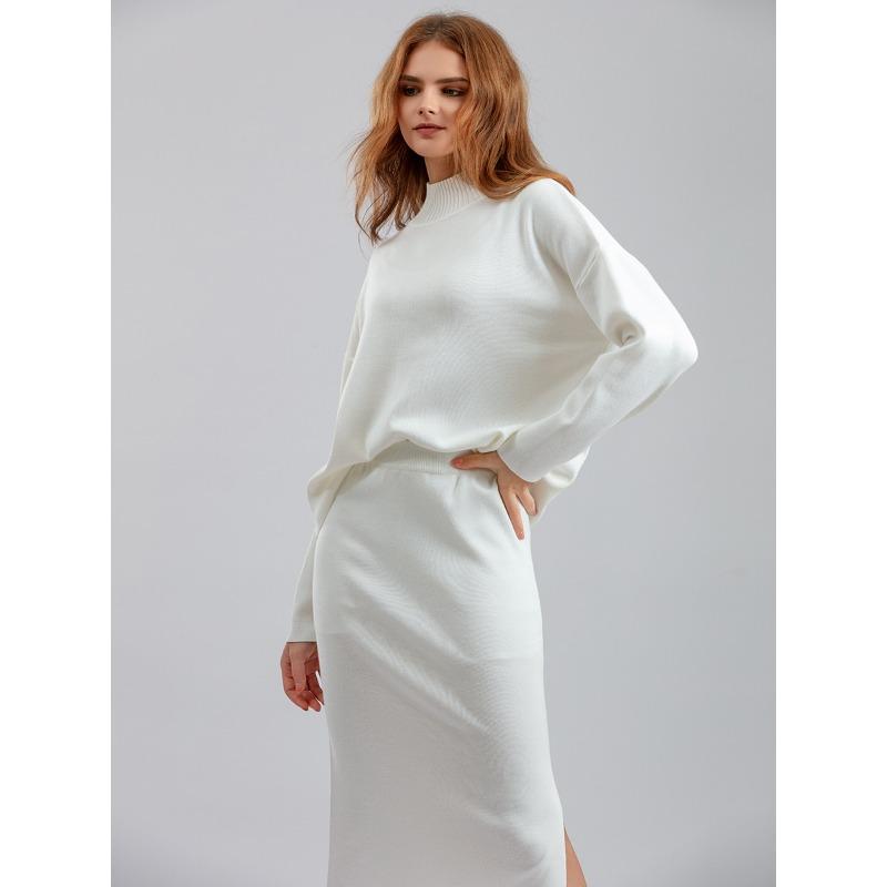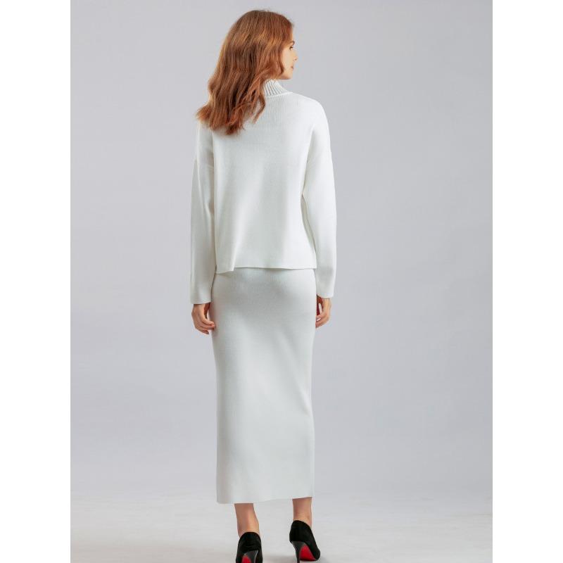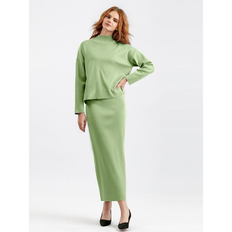 Женский весенне-осенний комплект свитеров, повседневные свободные модные вязаные топы с длинными рукавами, длинные юбки, свитера из двух предметов