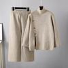 Вязаный свитер с воротником-стойкой и воротником-стойкой, женский осенне-зимний теплый комплект для снижения возраста, повседневные широкие брюки, комплект из двух предметов